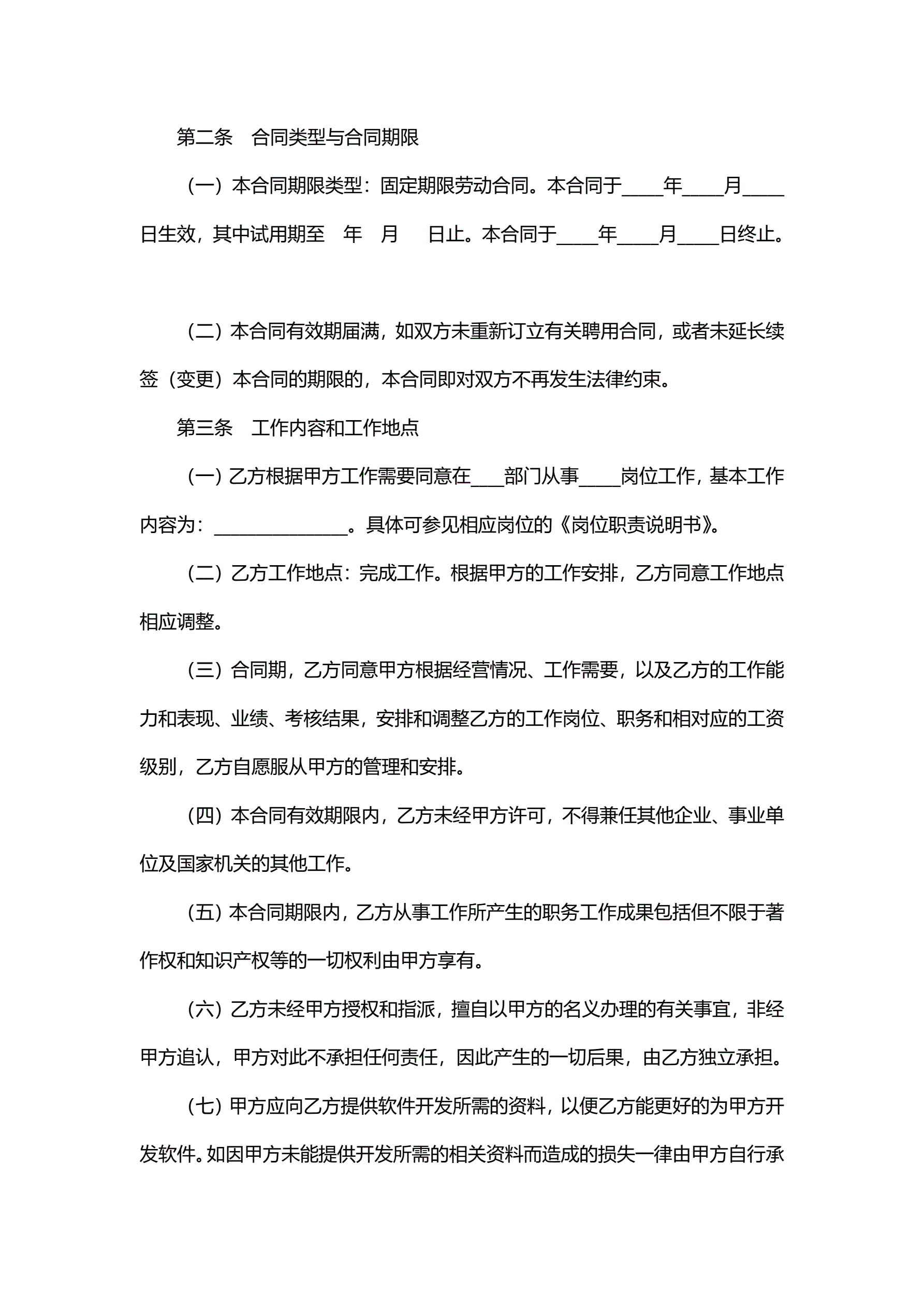 IT研发岗劳动合同范本