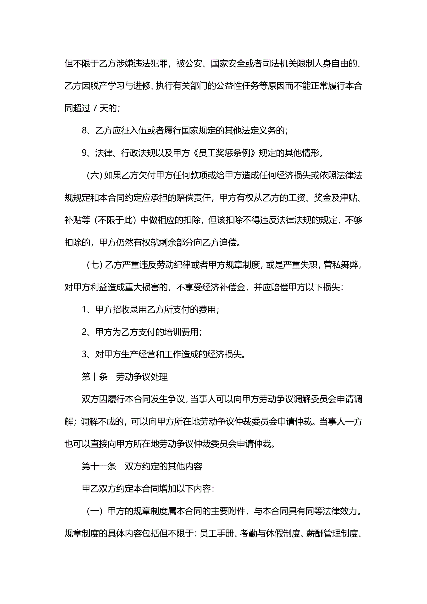 待岗协议
