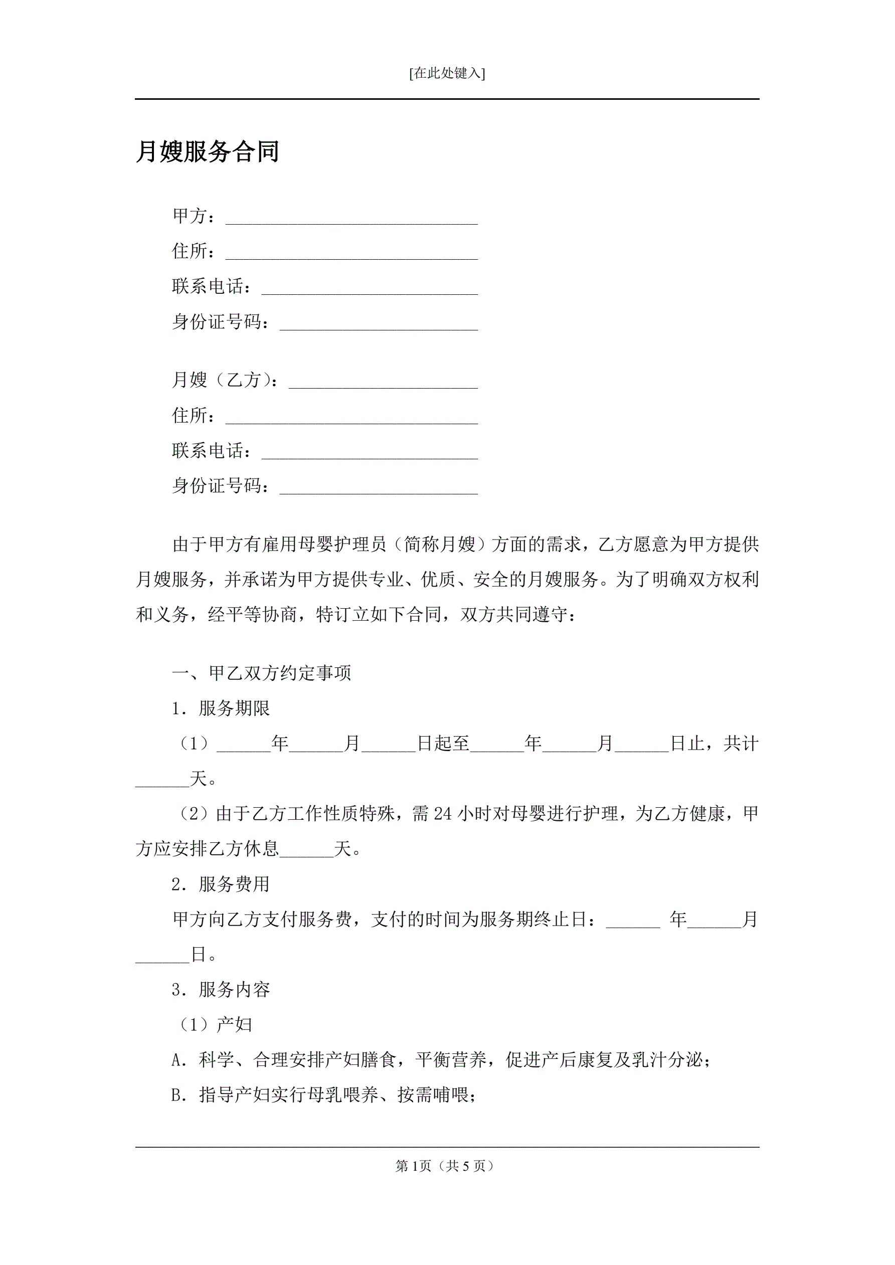 >月嫂服务合同