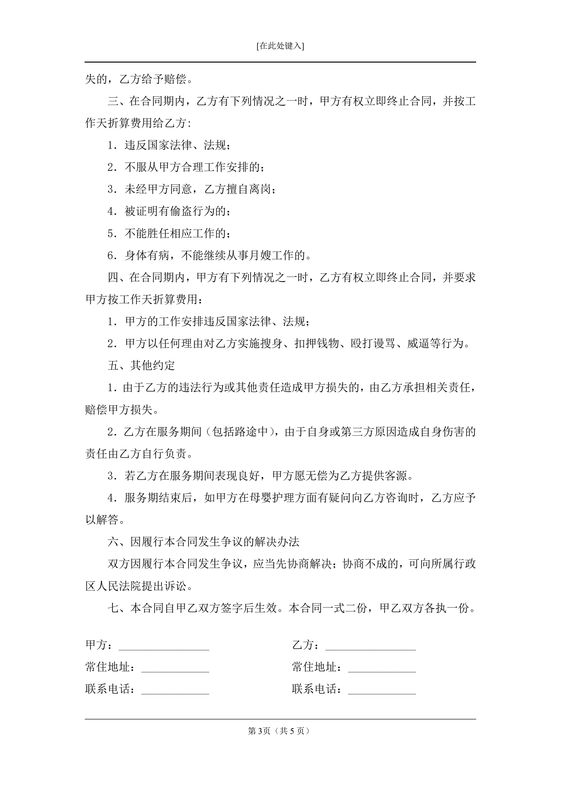 保姆合同