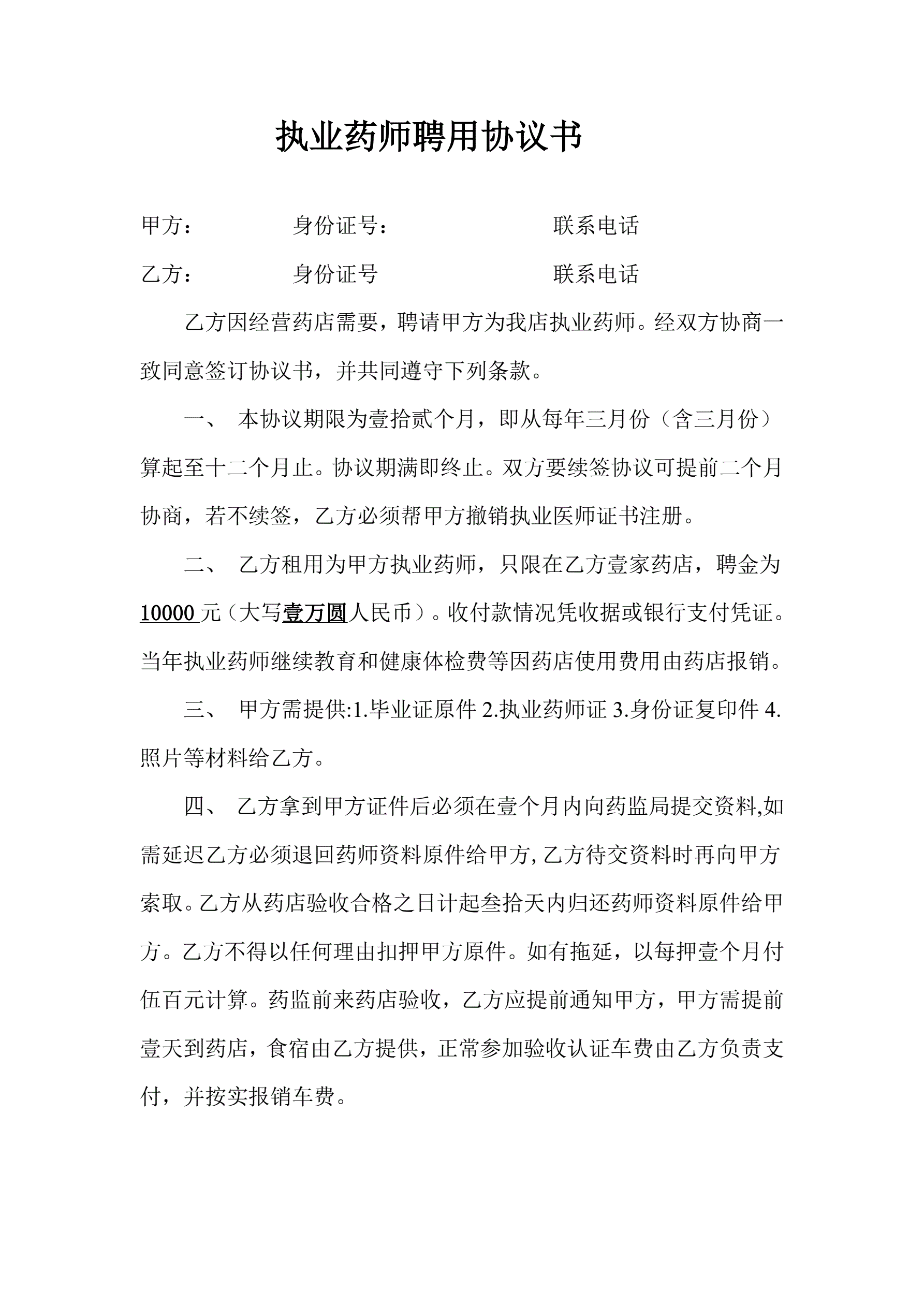 >执业药师聘用协议