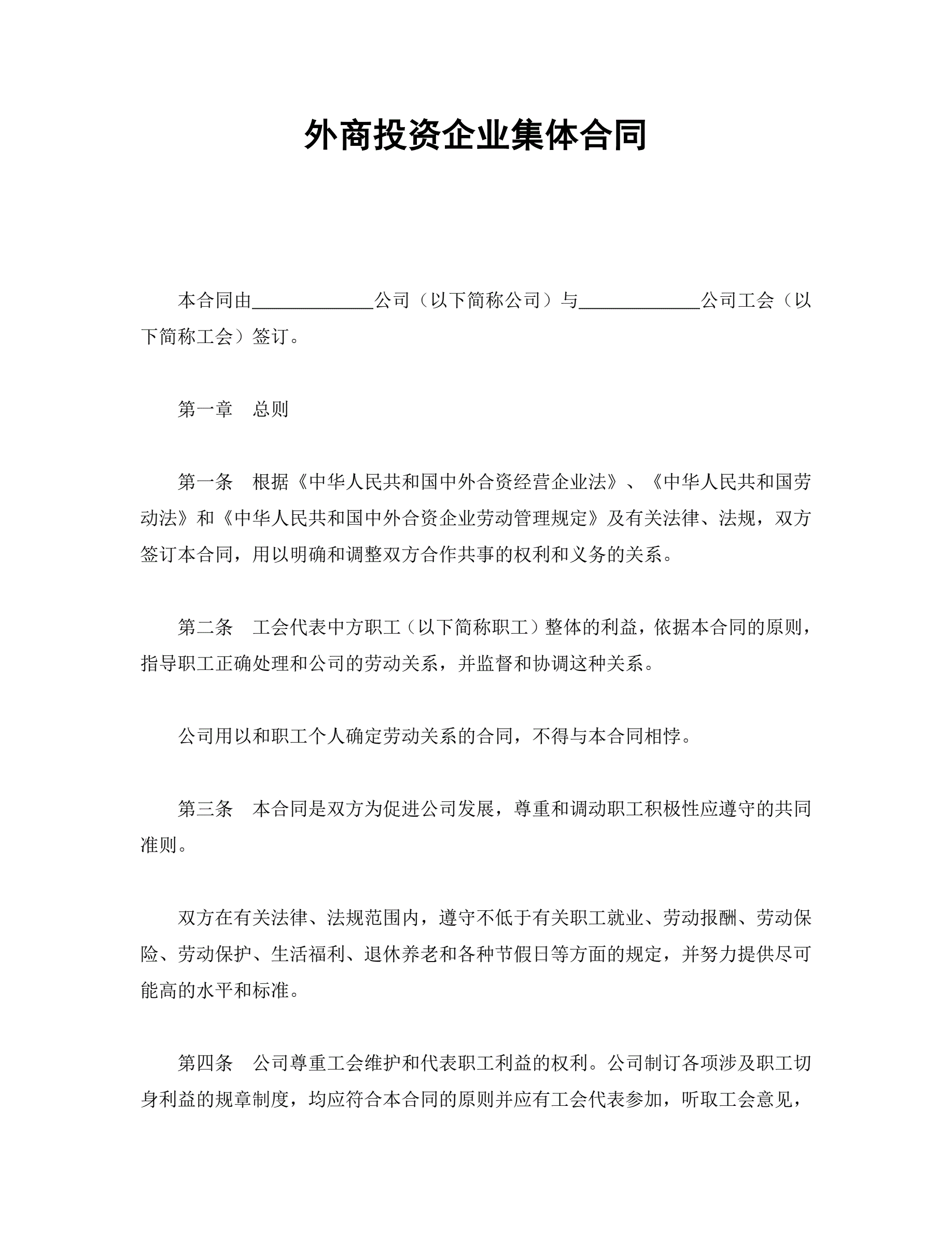 >外商投资企业集体合同
