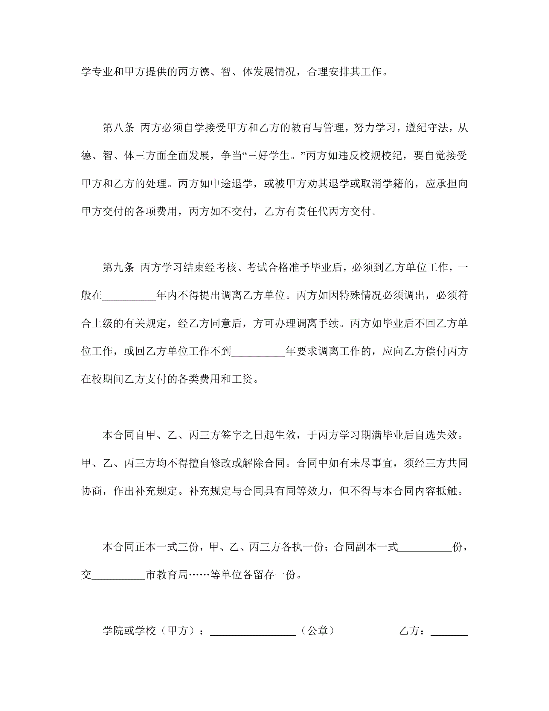 >委托合同(供委托培训用)