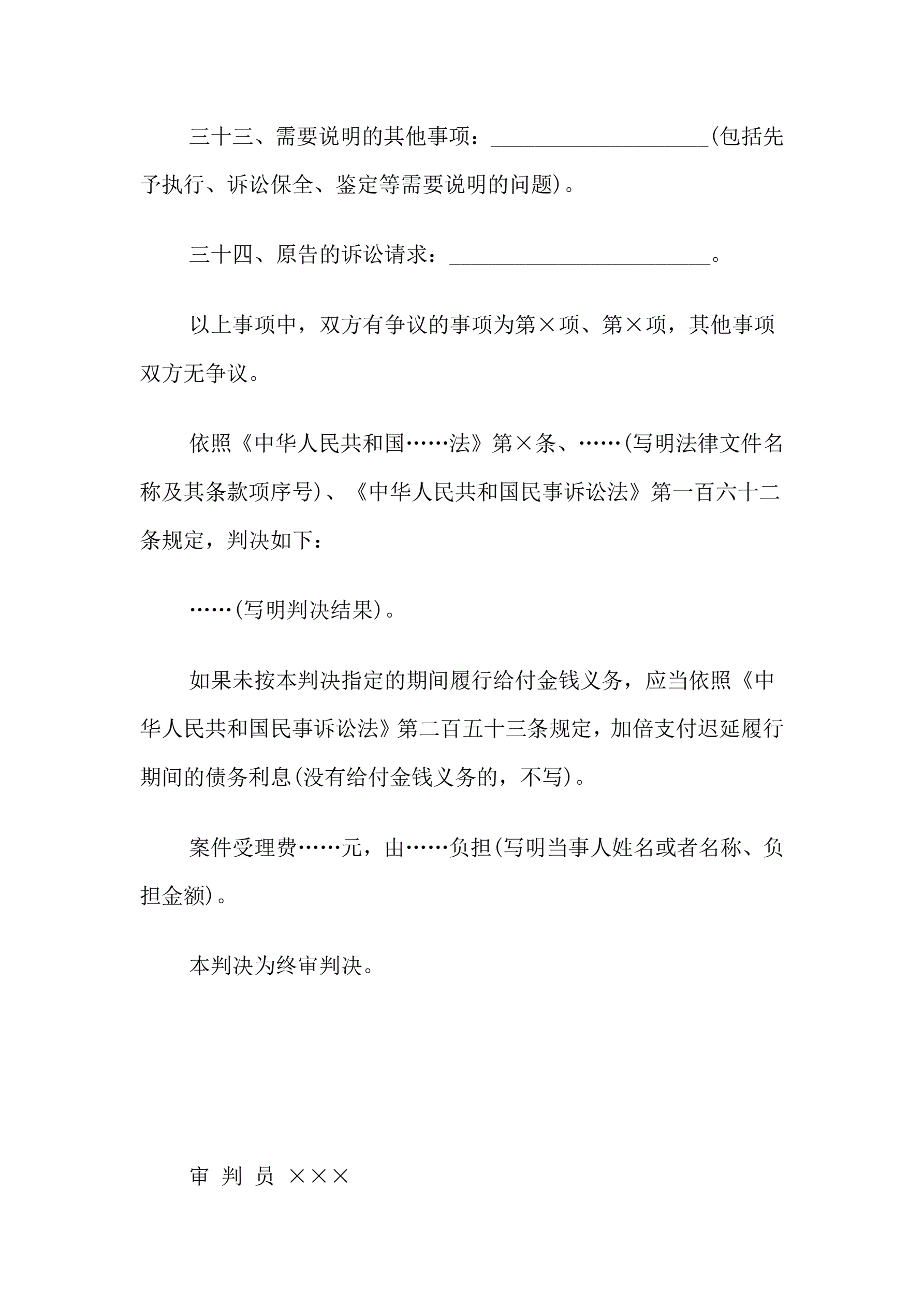 民事判决书(简易程序和小额诉讼程序要素式判决用,以劳动争议为例)