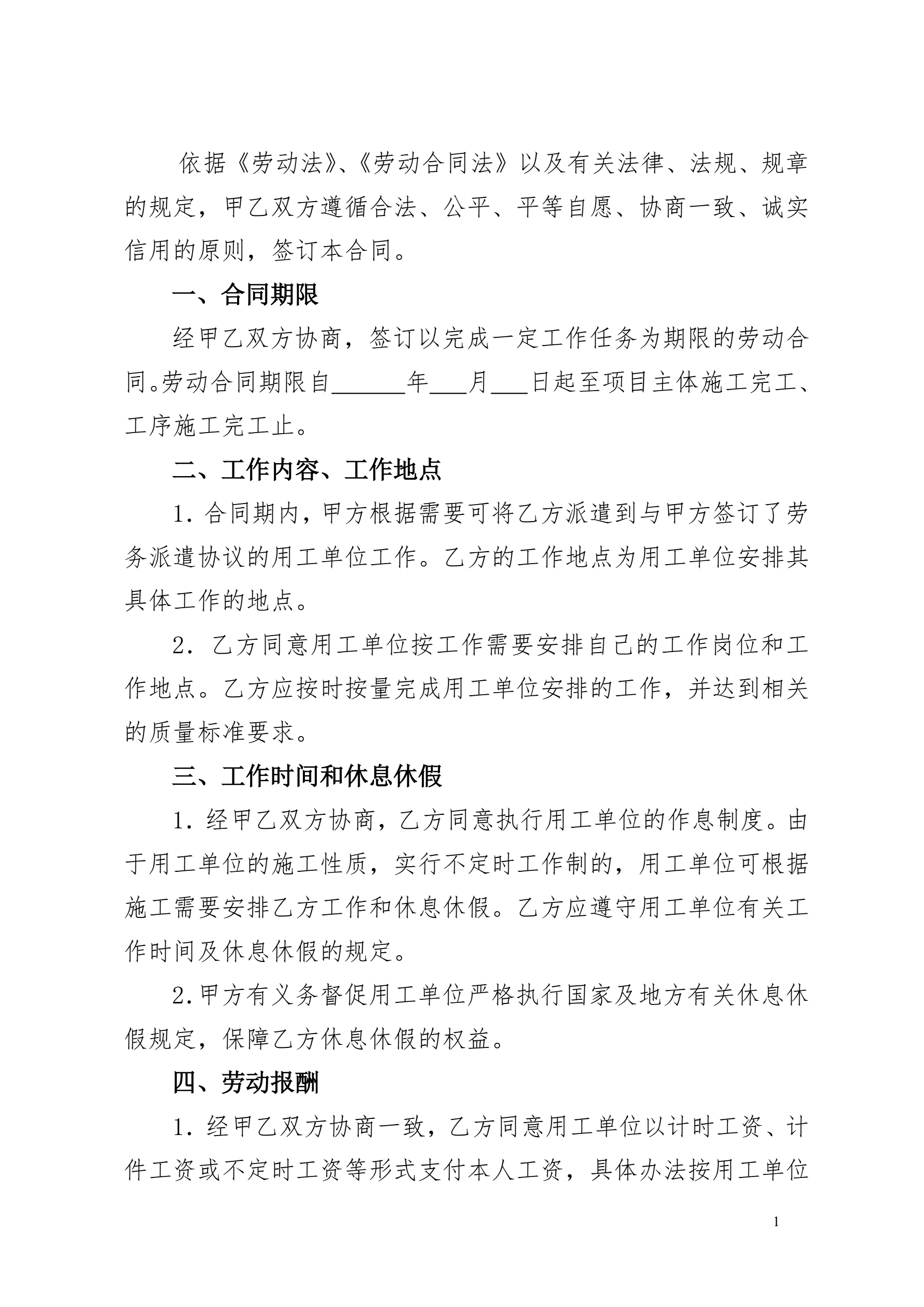 合同名称:劳动合同书(劳务公司与劳务人员签订)