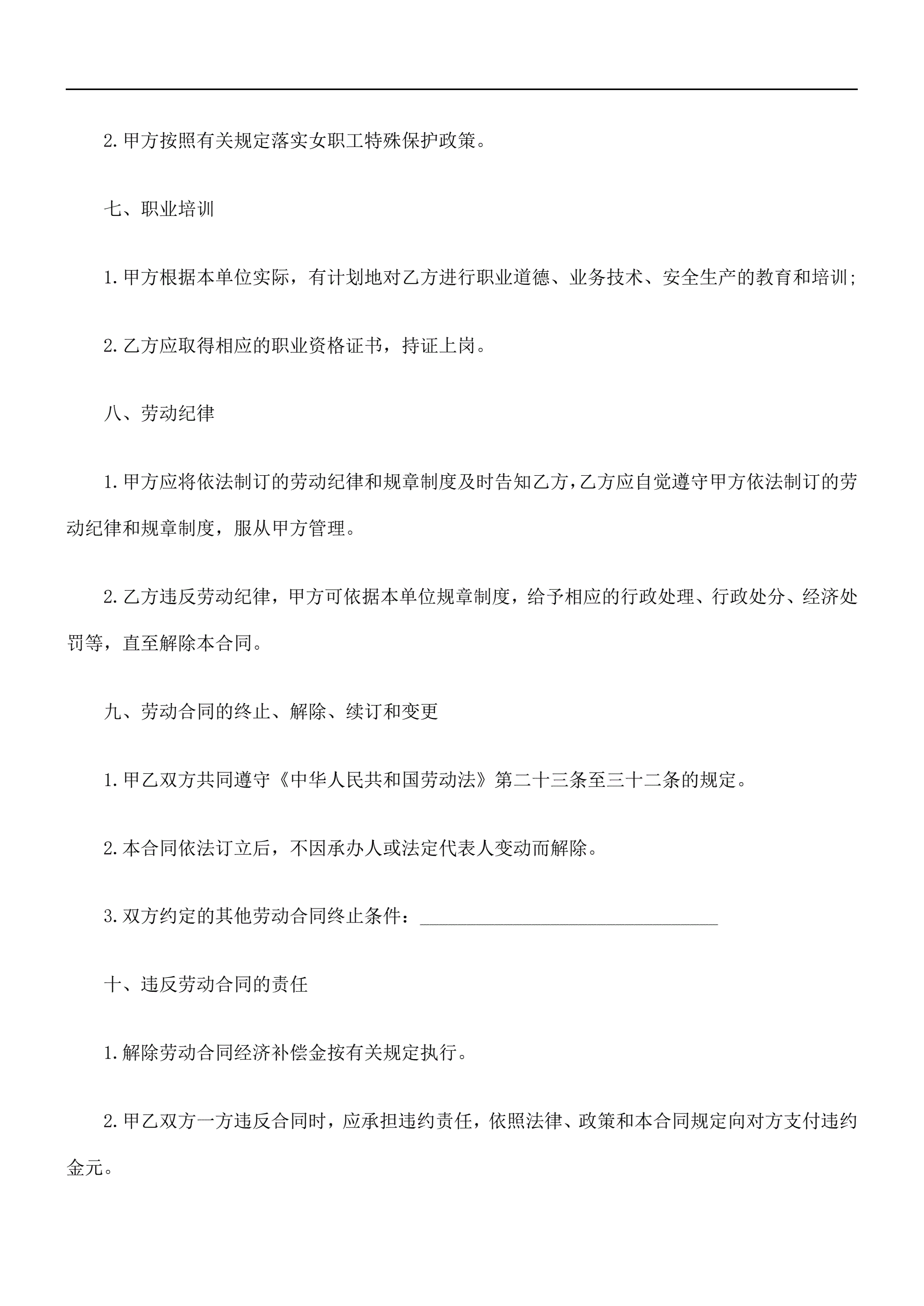 商贸、金融行业劳动合同书