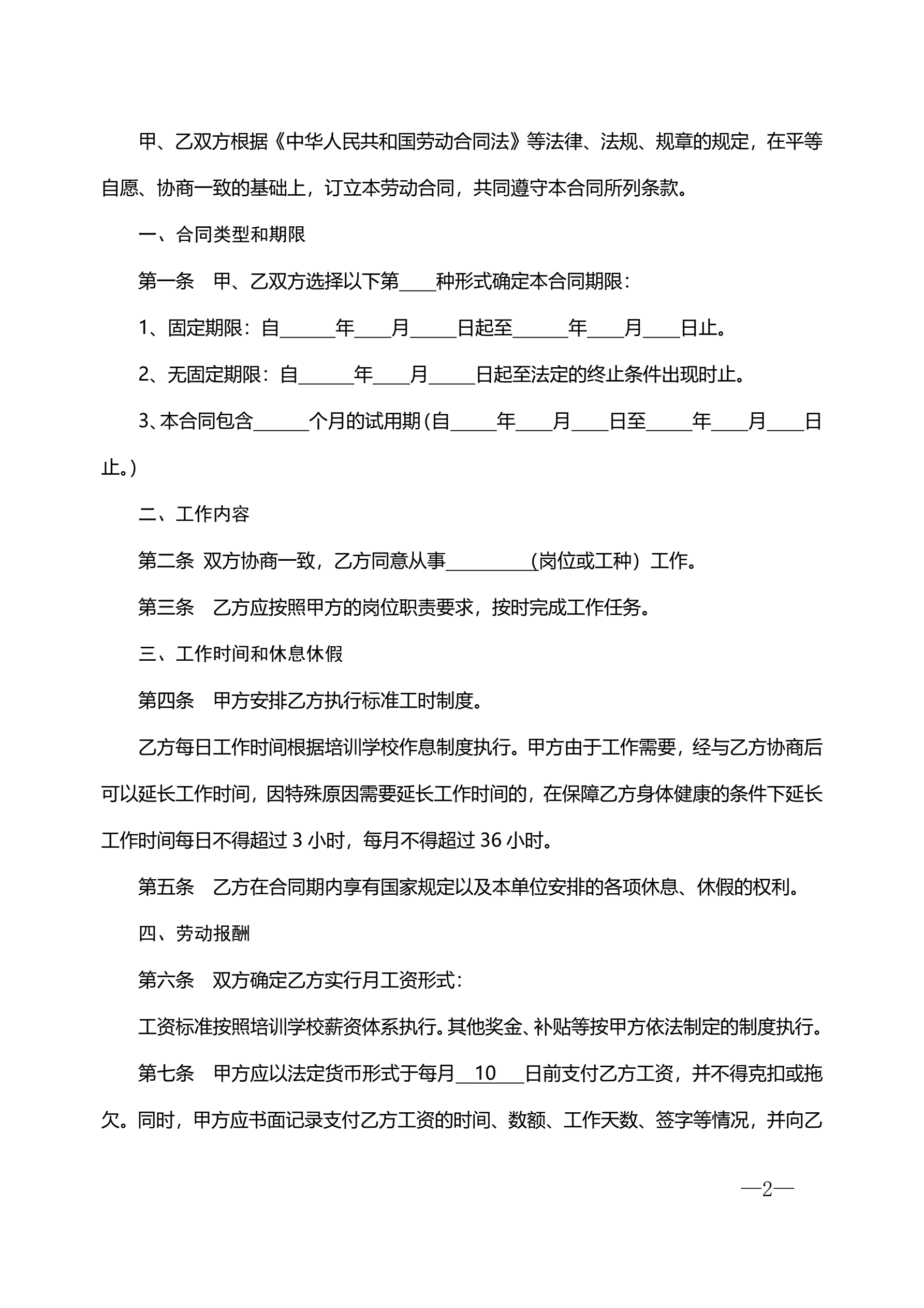 合同名称:培训学校劳动合同书-