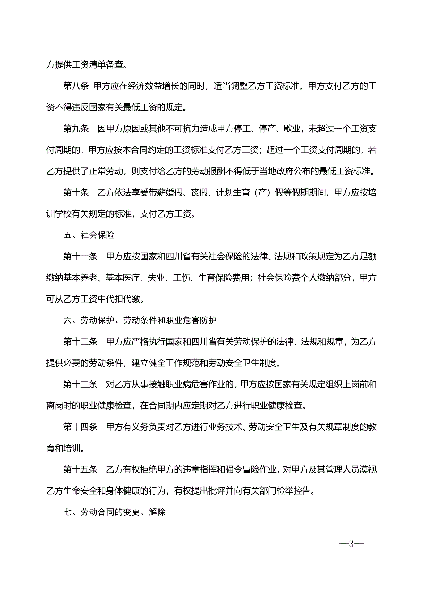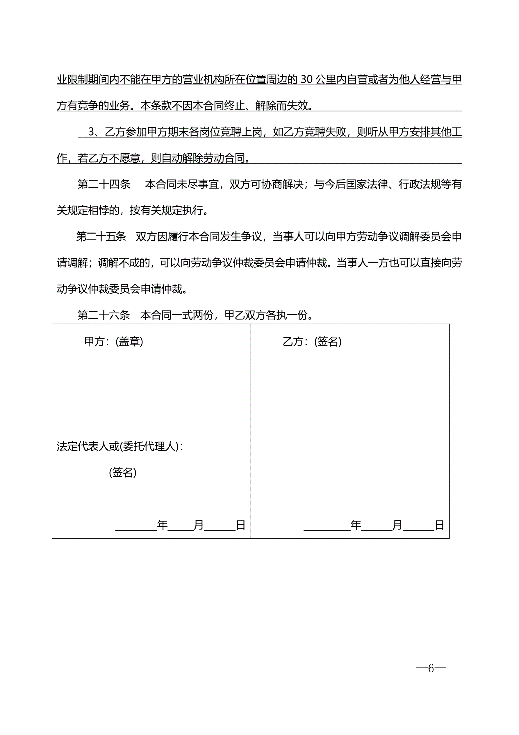 待岗协议