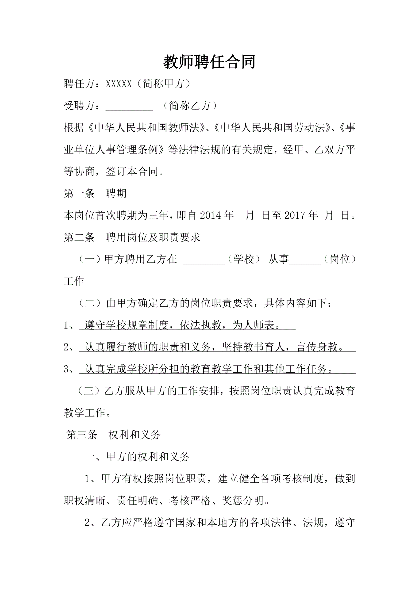 >教师聘用合同范本