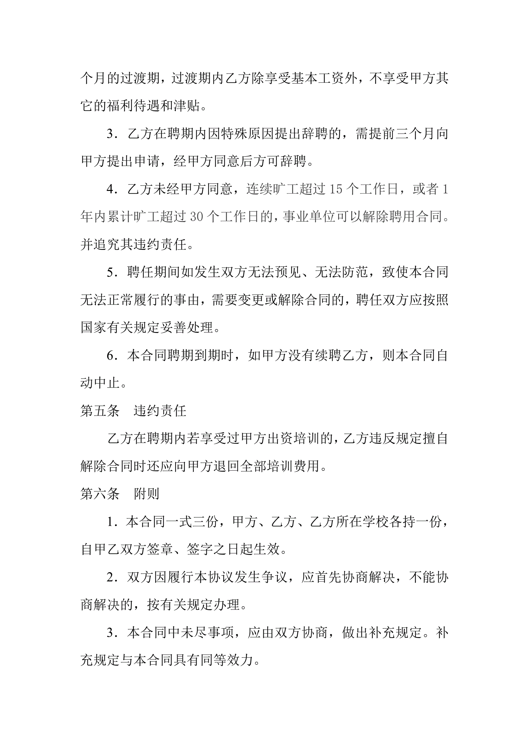待岗协议
