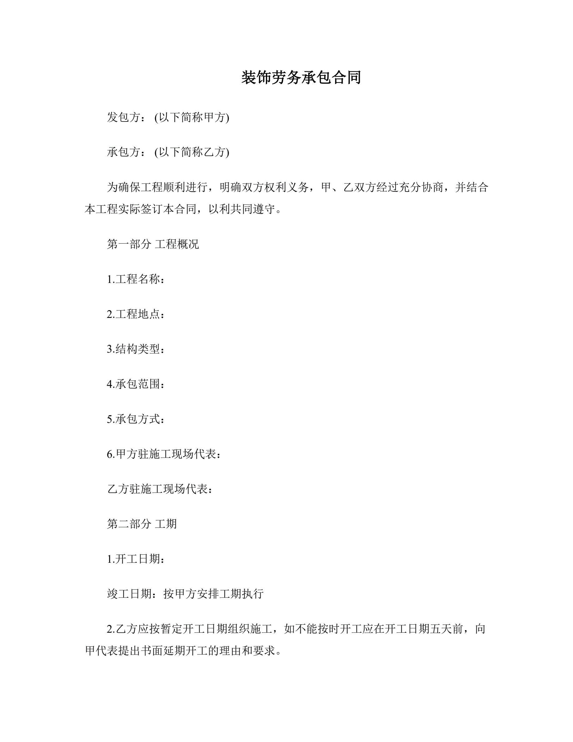装饰劳务承包合同