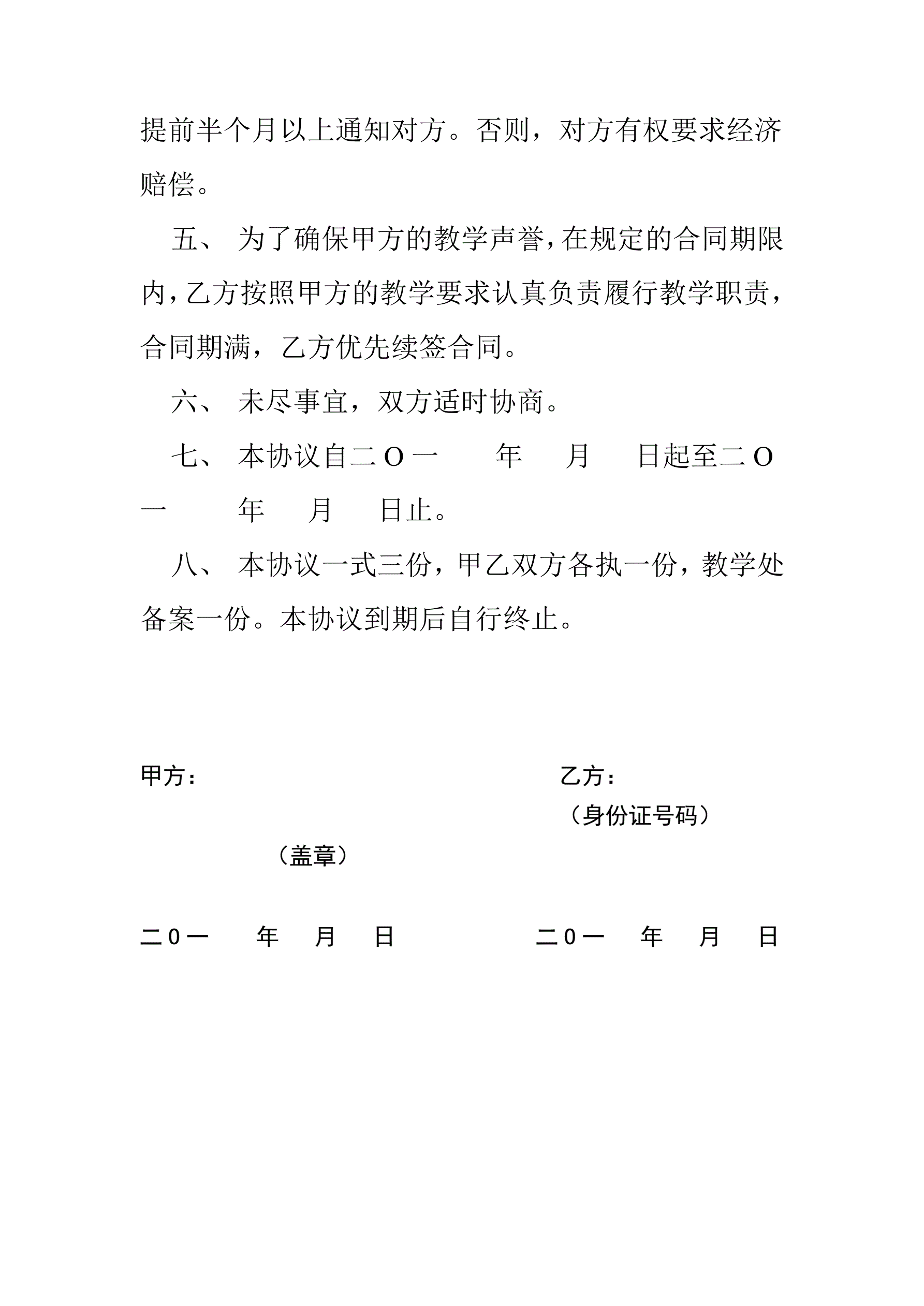 美术教师聘任合同书