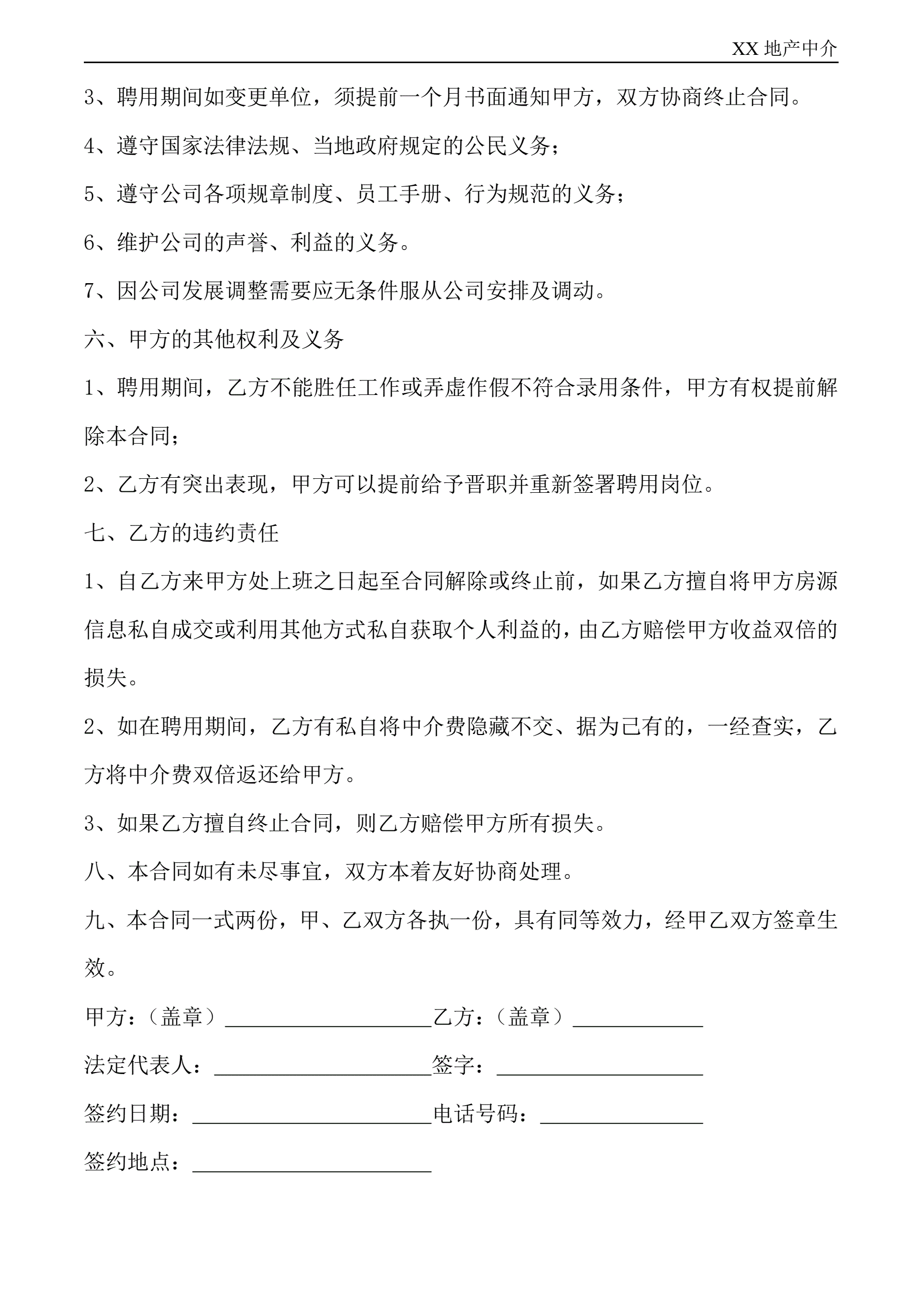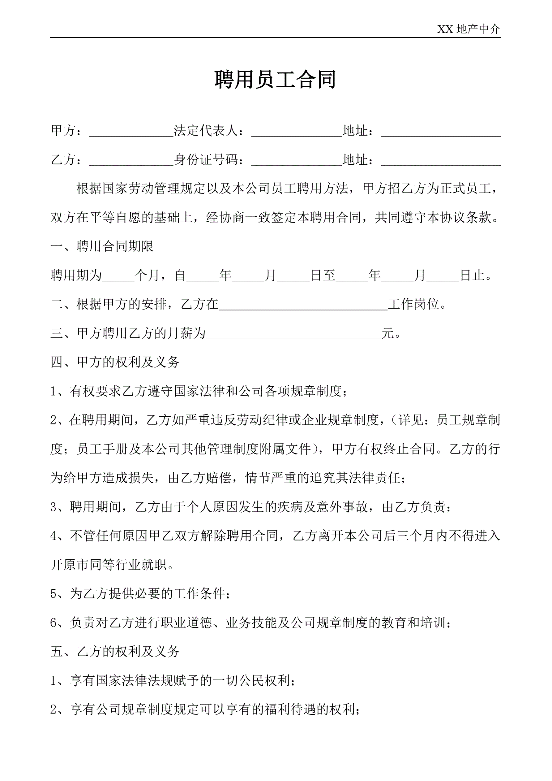 中介公司员工聘用合同