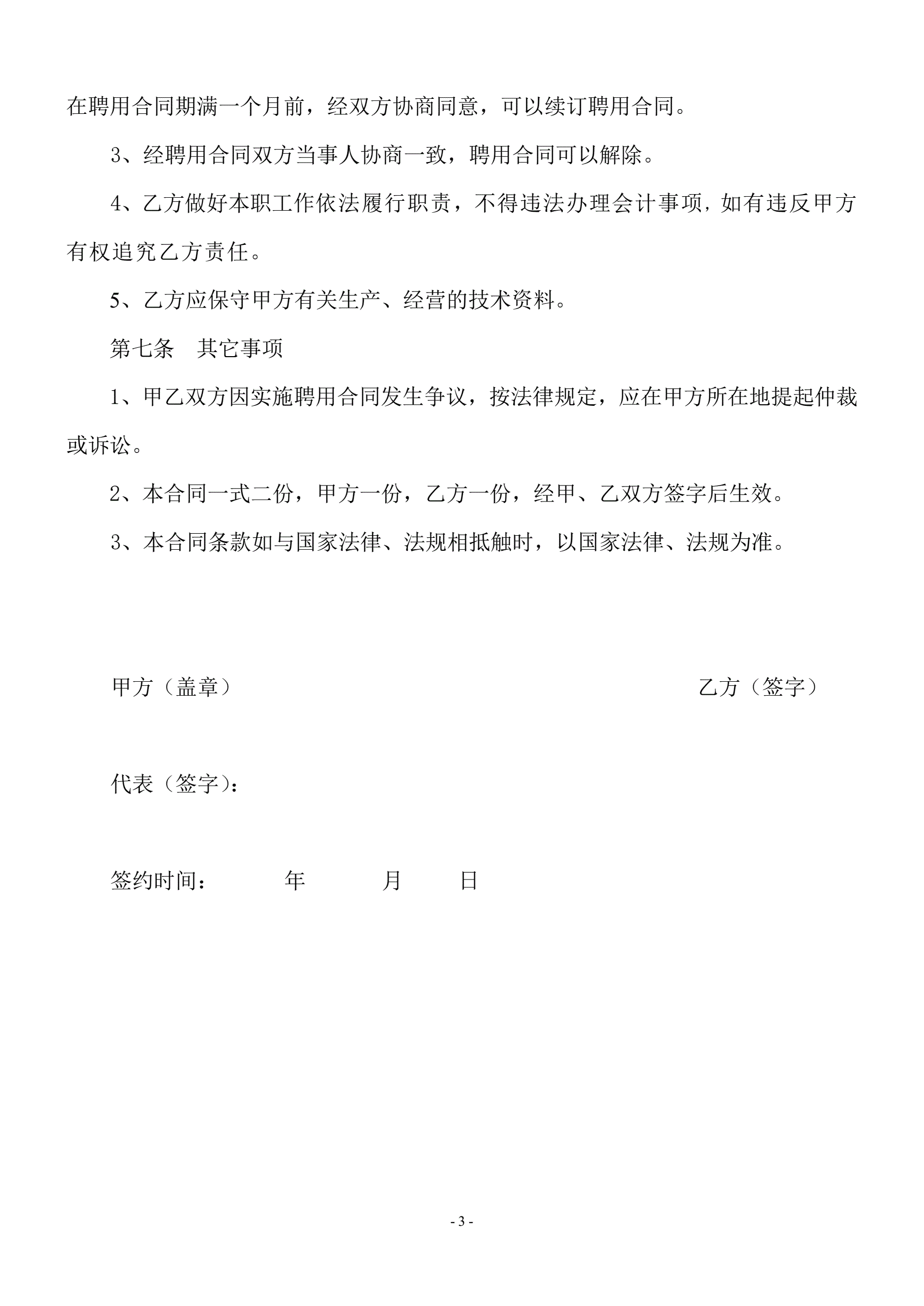企业会计人员聘用合同