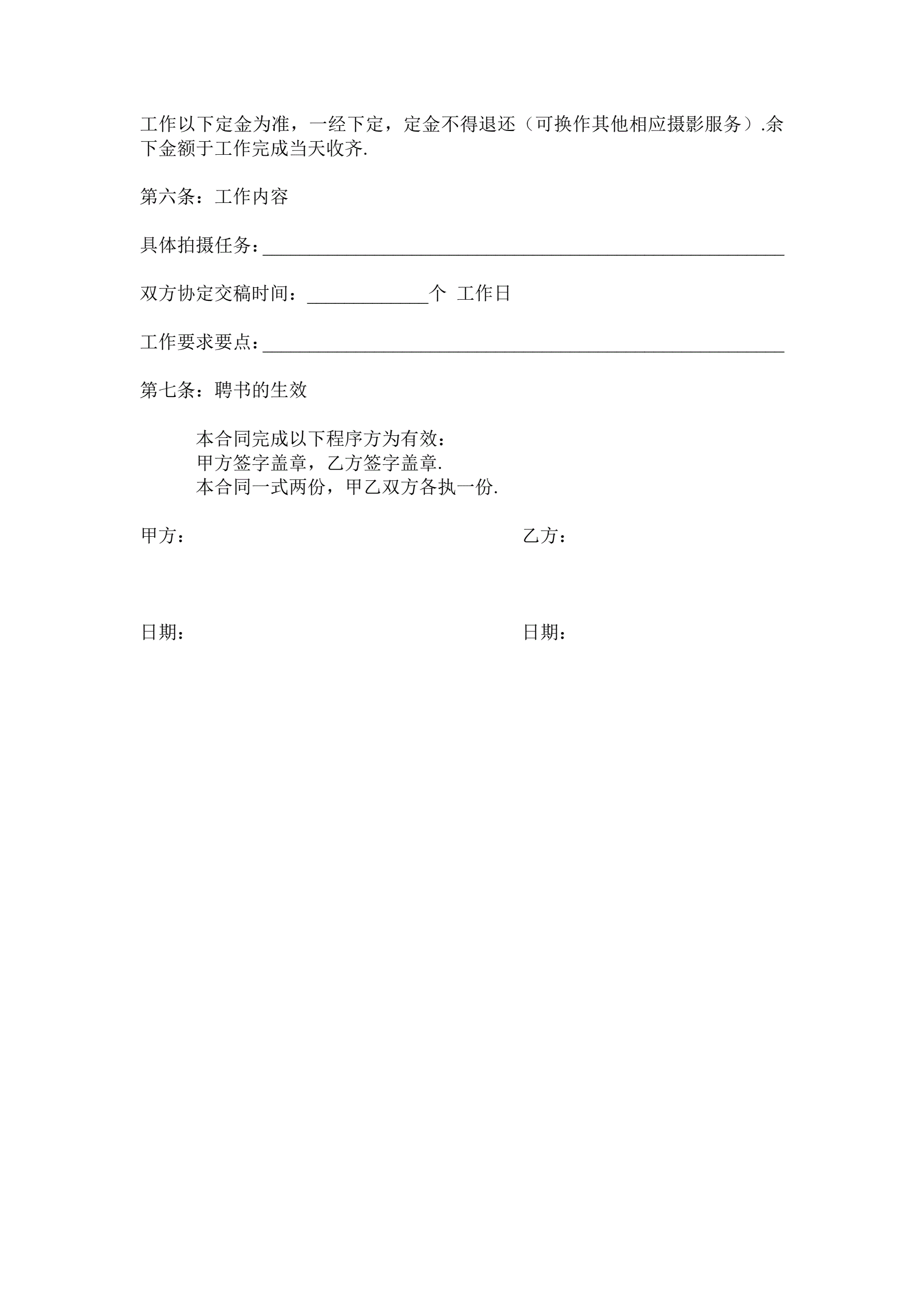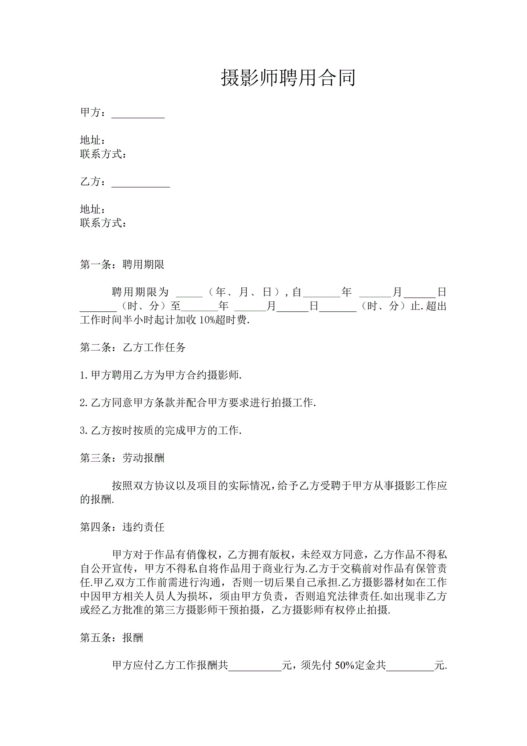 合同名称:摄影师聘用合同