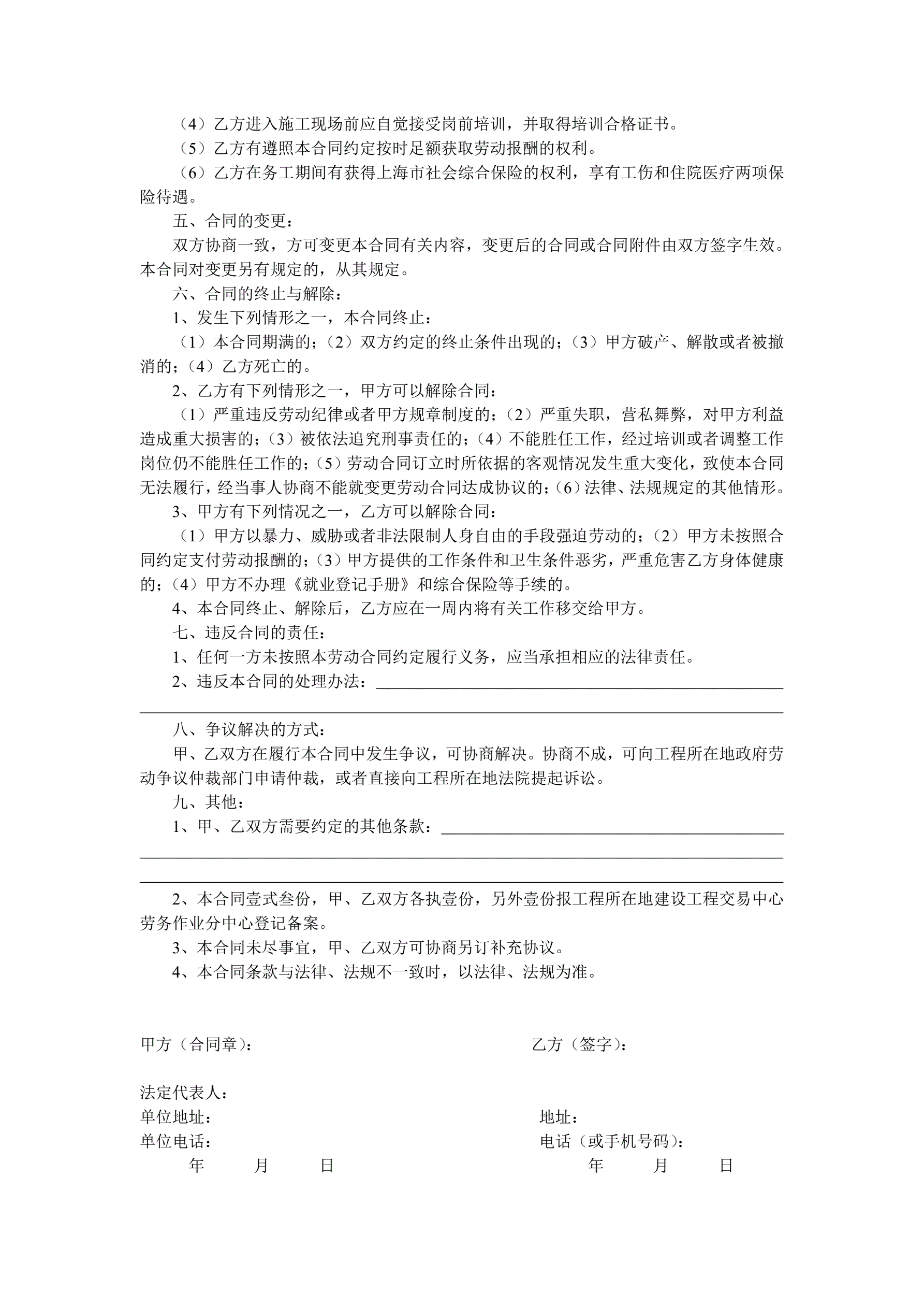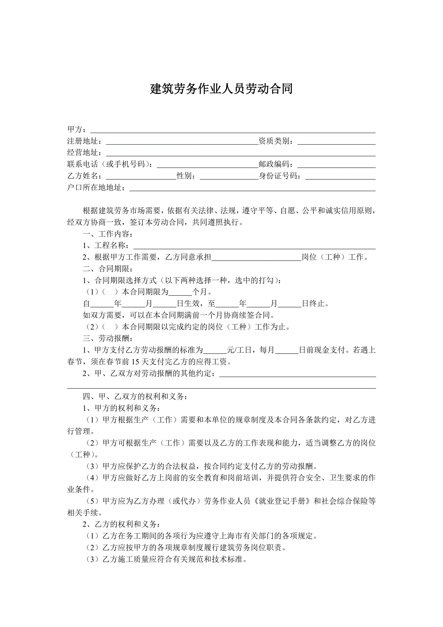 建筑劳务人员劳动合同