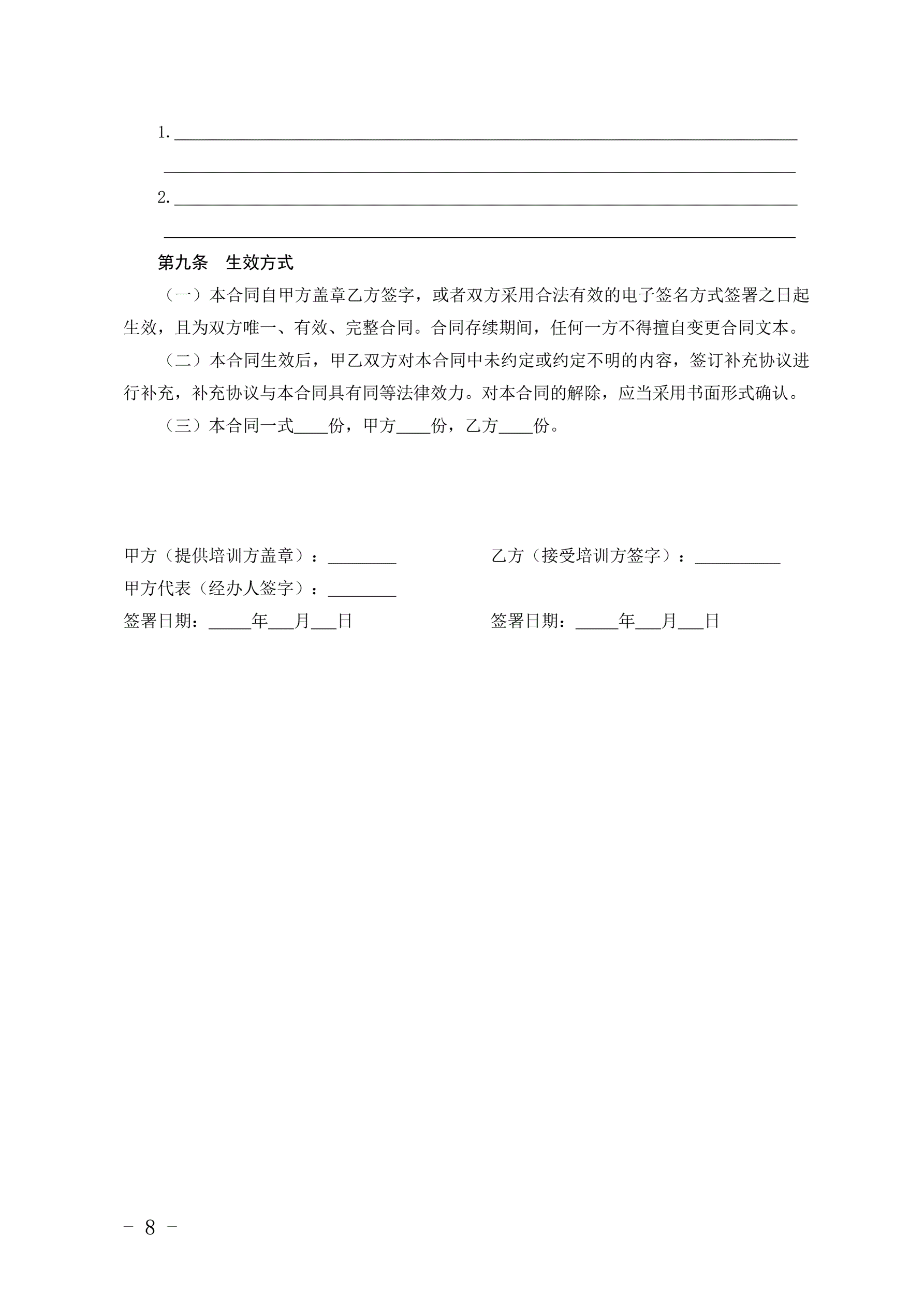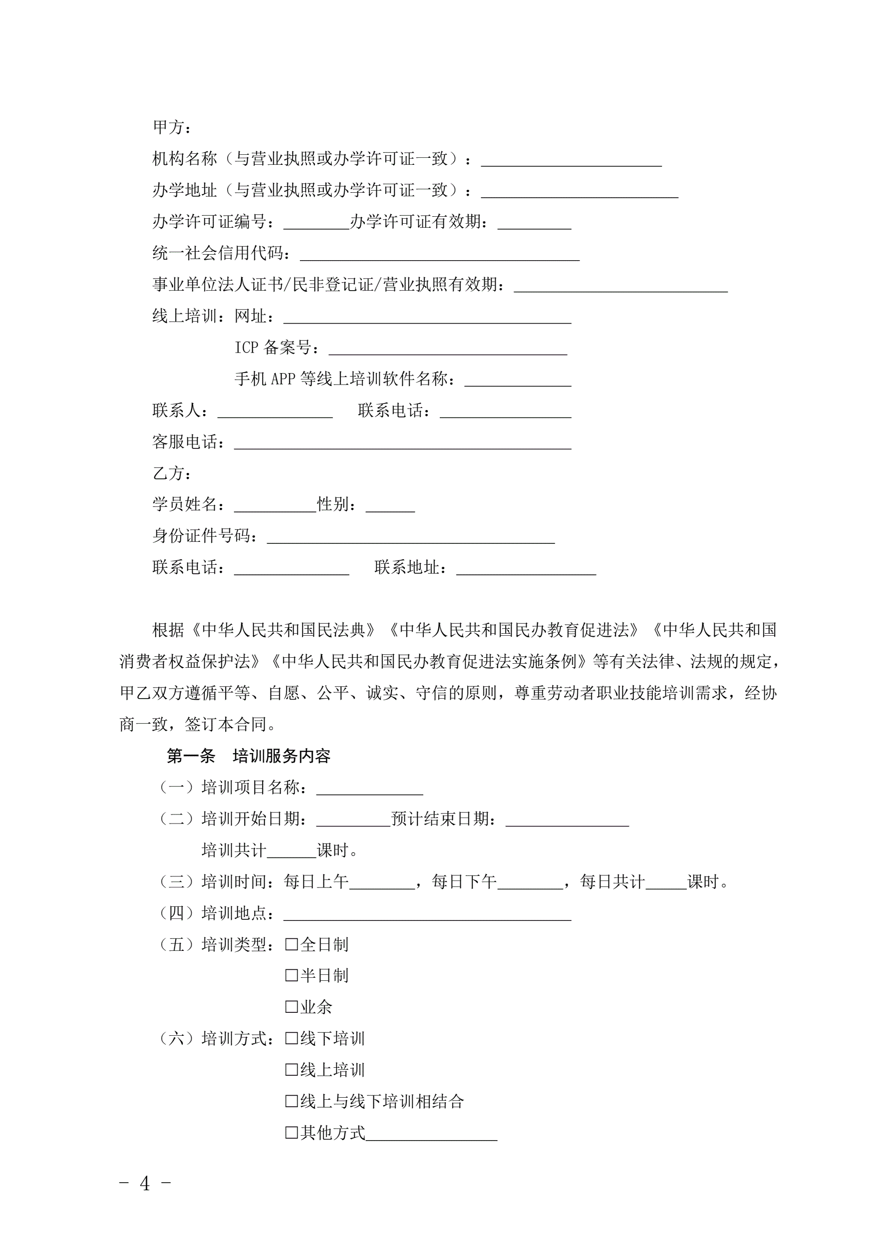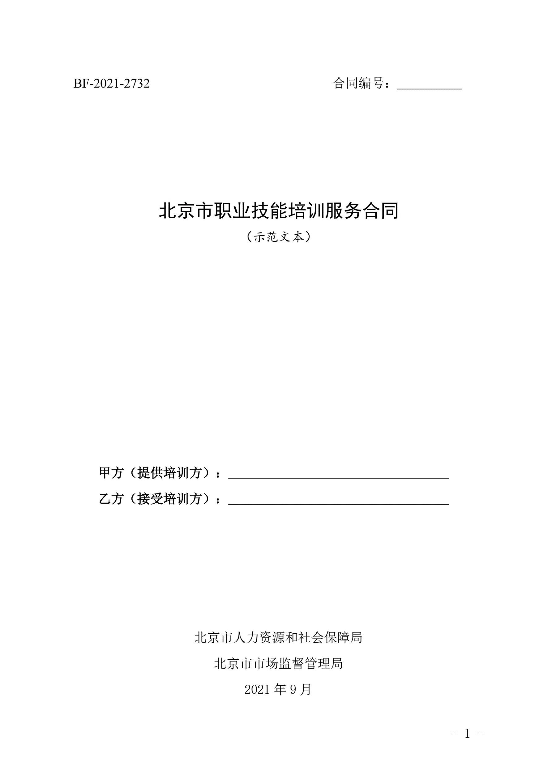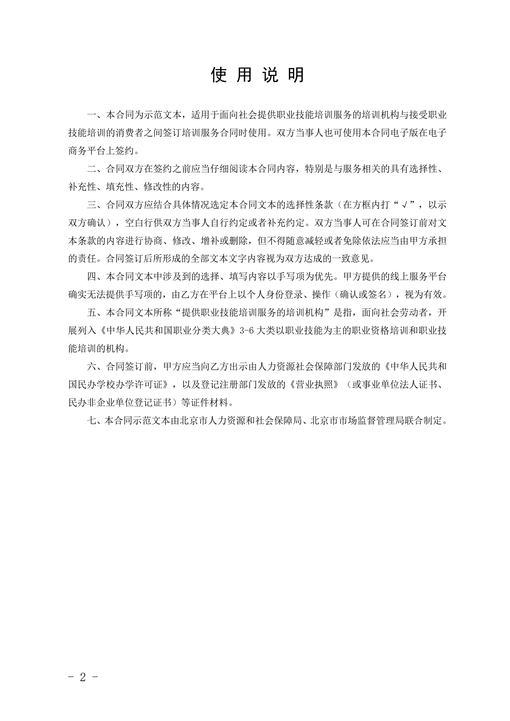 >北京市职业技能培训服务合同
