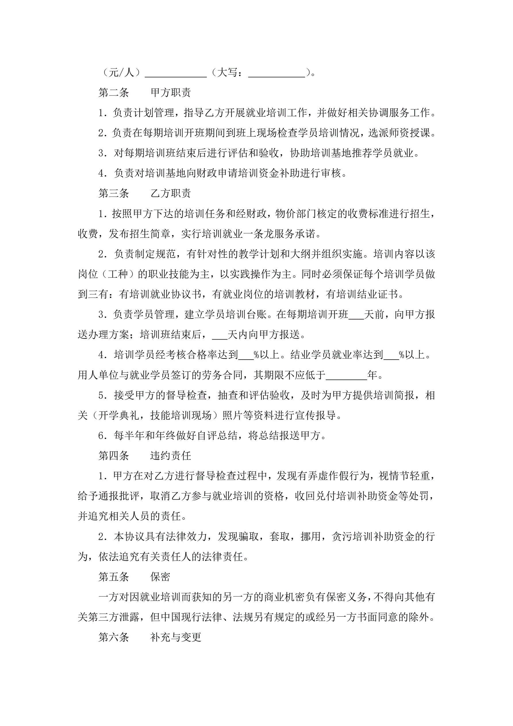 就业培训协议书