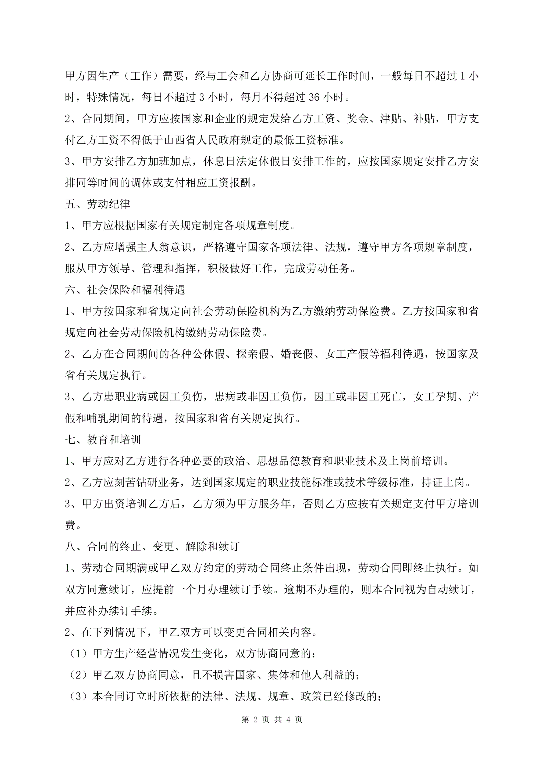 甘肃省合同制职工劳动合同书