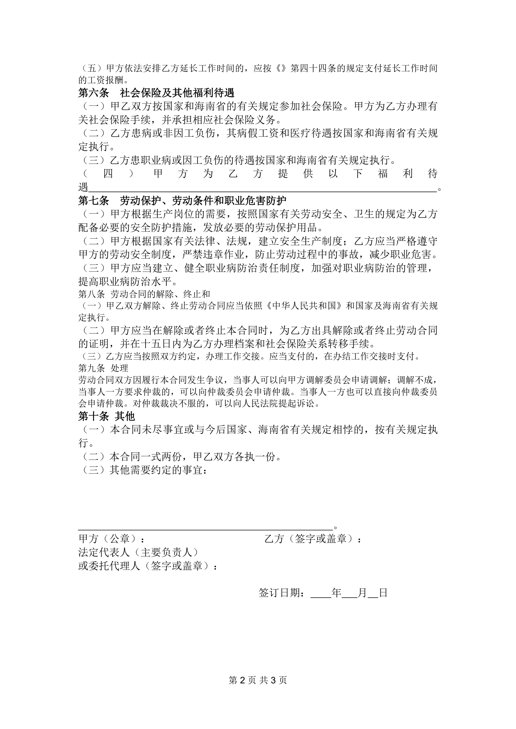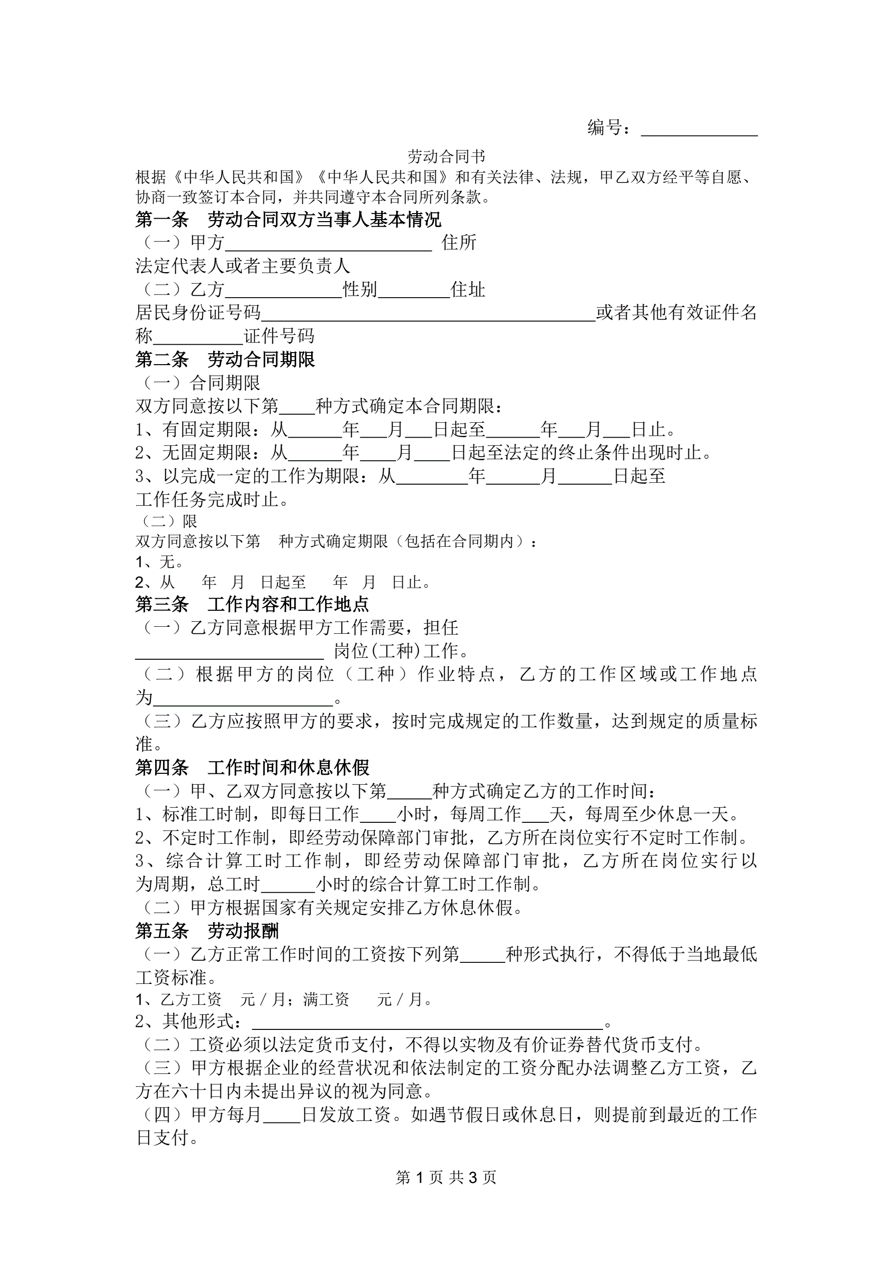 劳 动 合 同 书