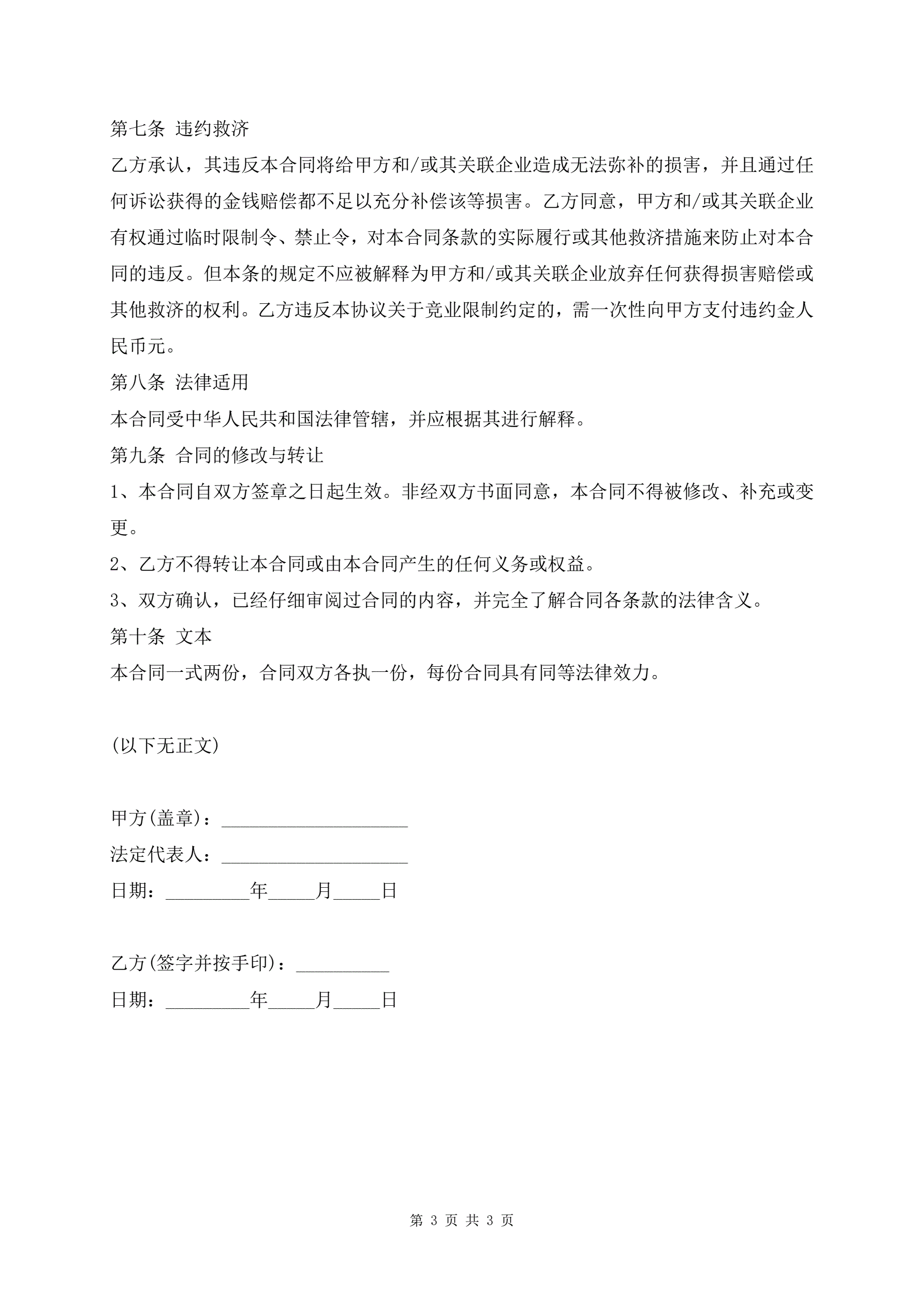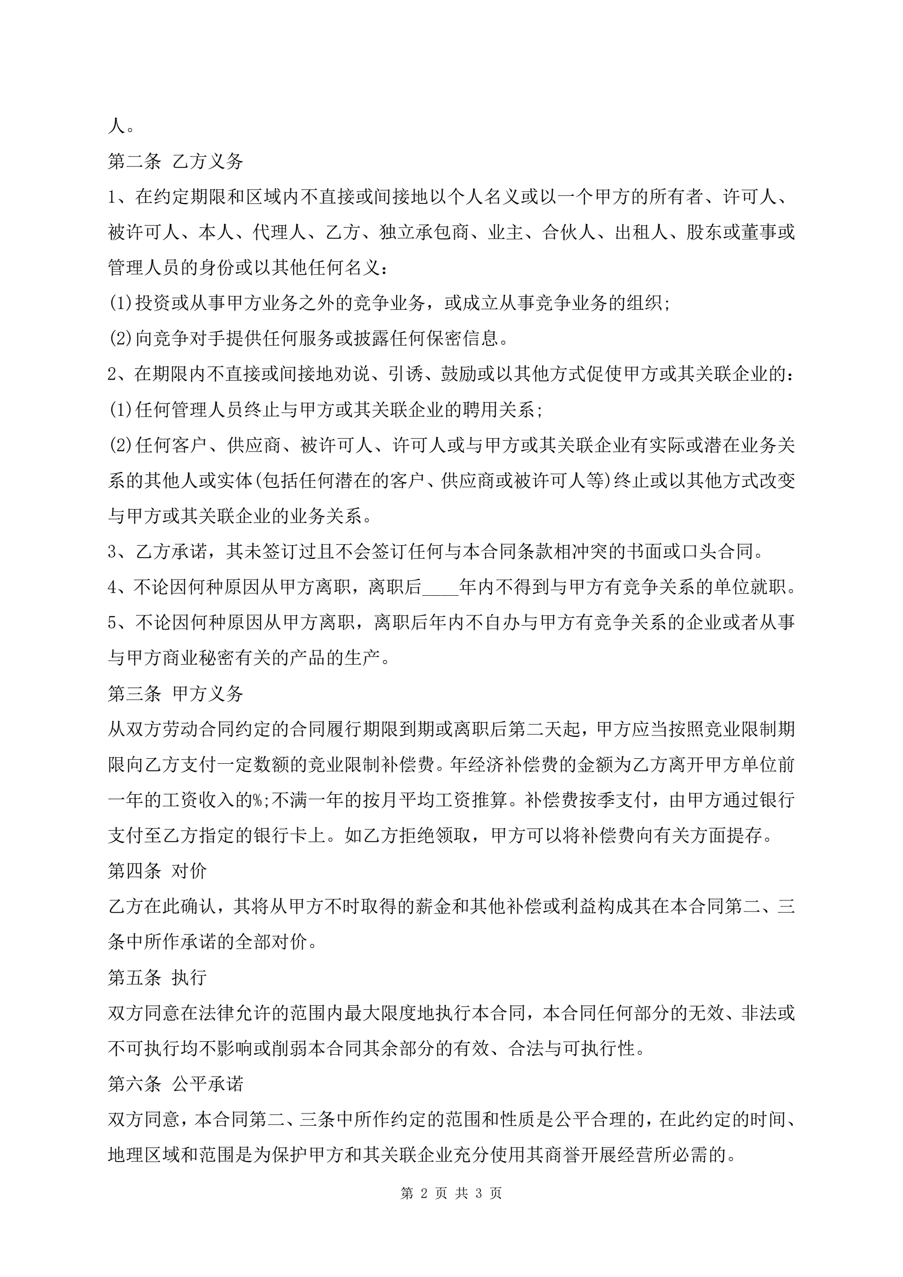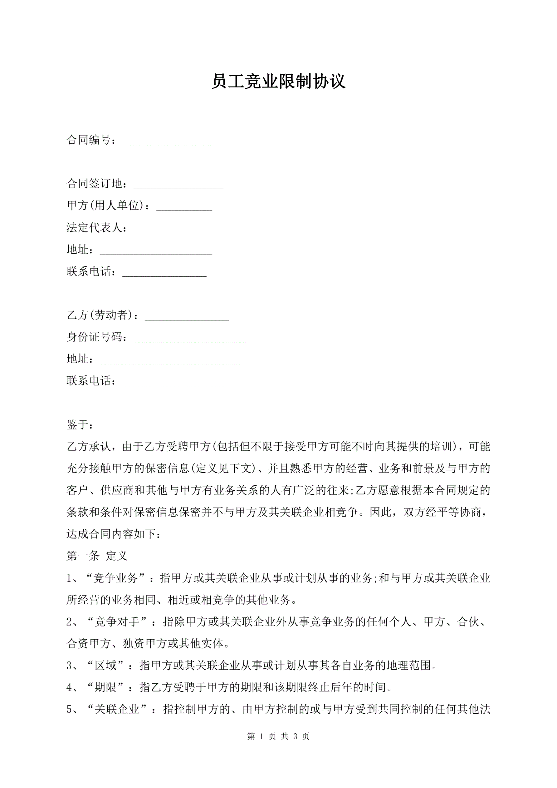 >员工竞业限制协议