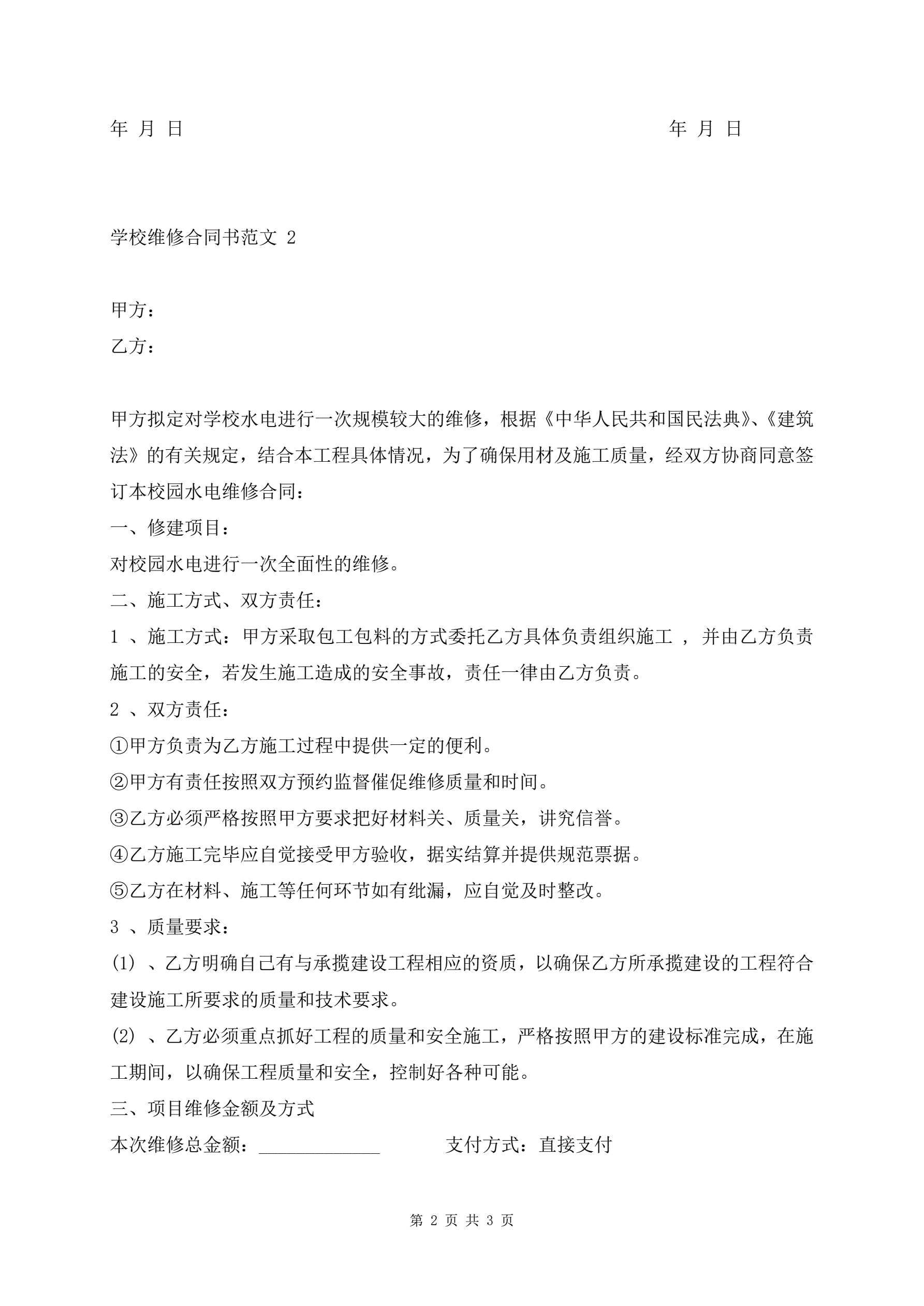 >学校维修合同书范文
