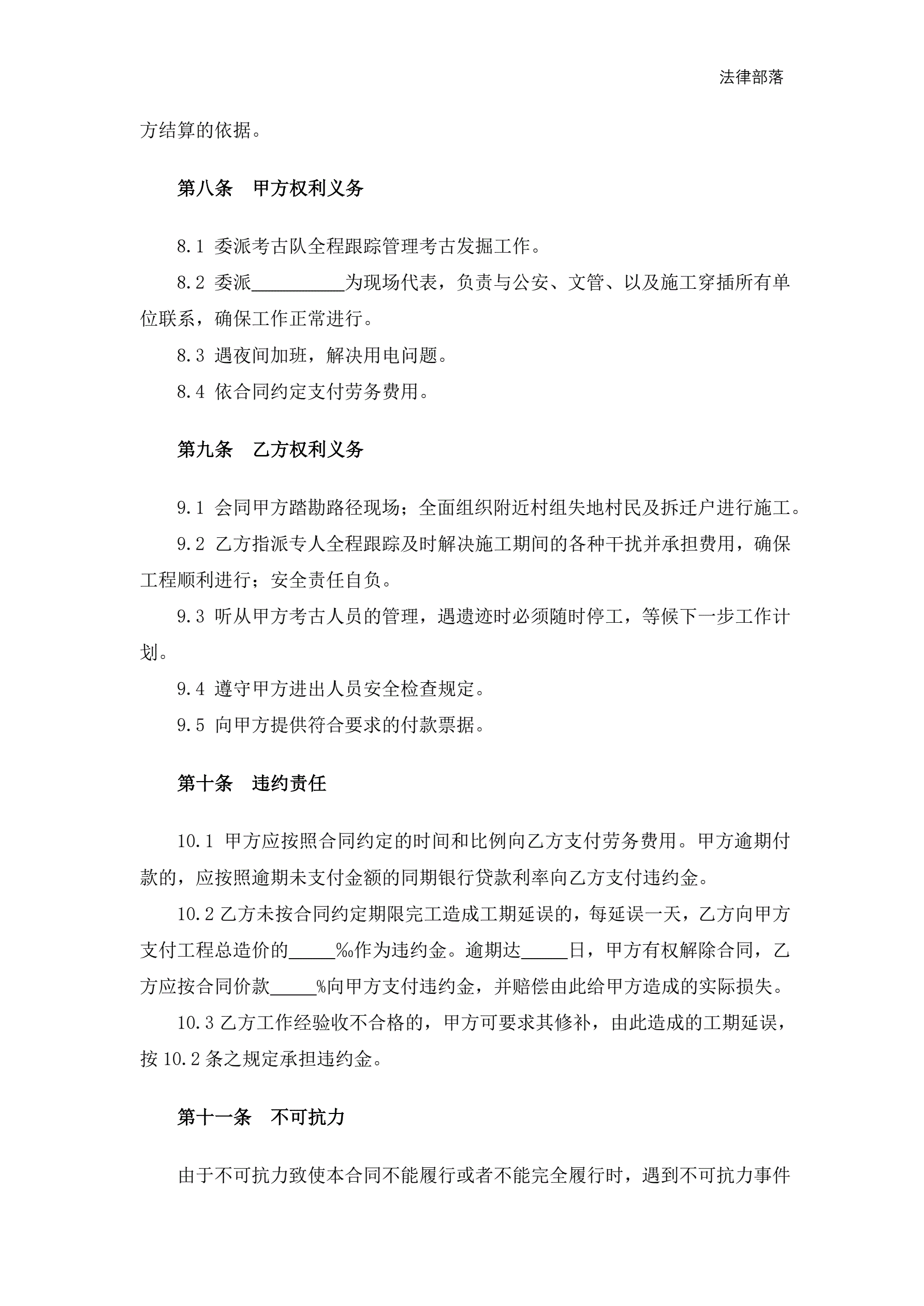 遗址考古土方挖掘劳务合同