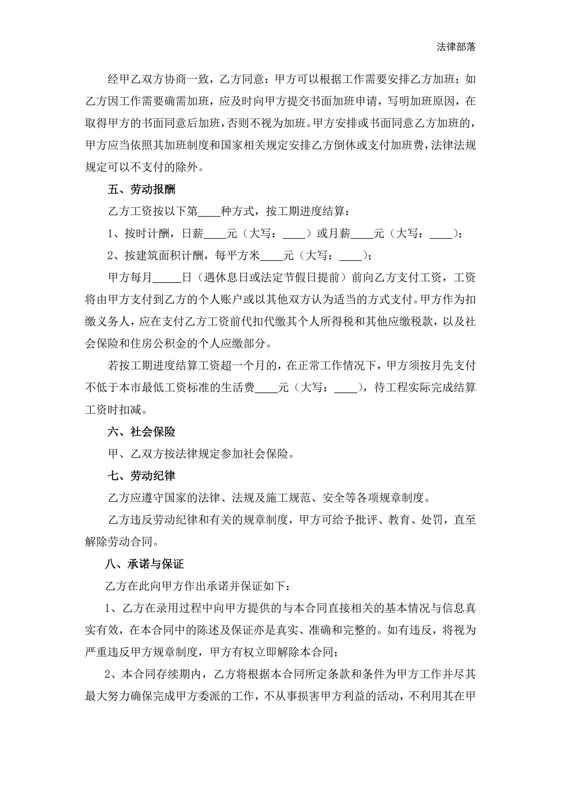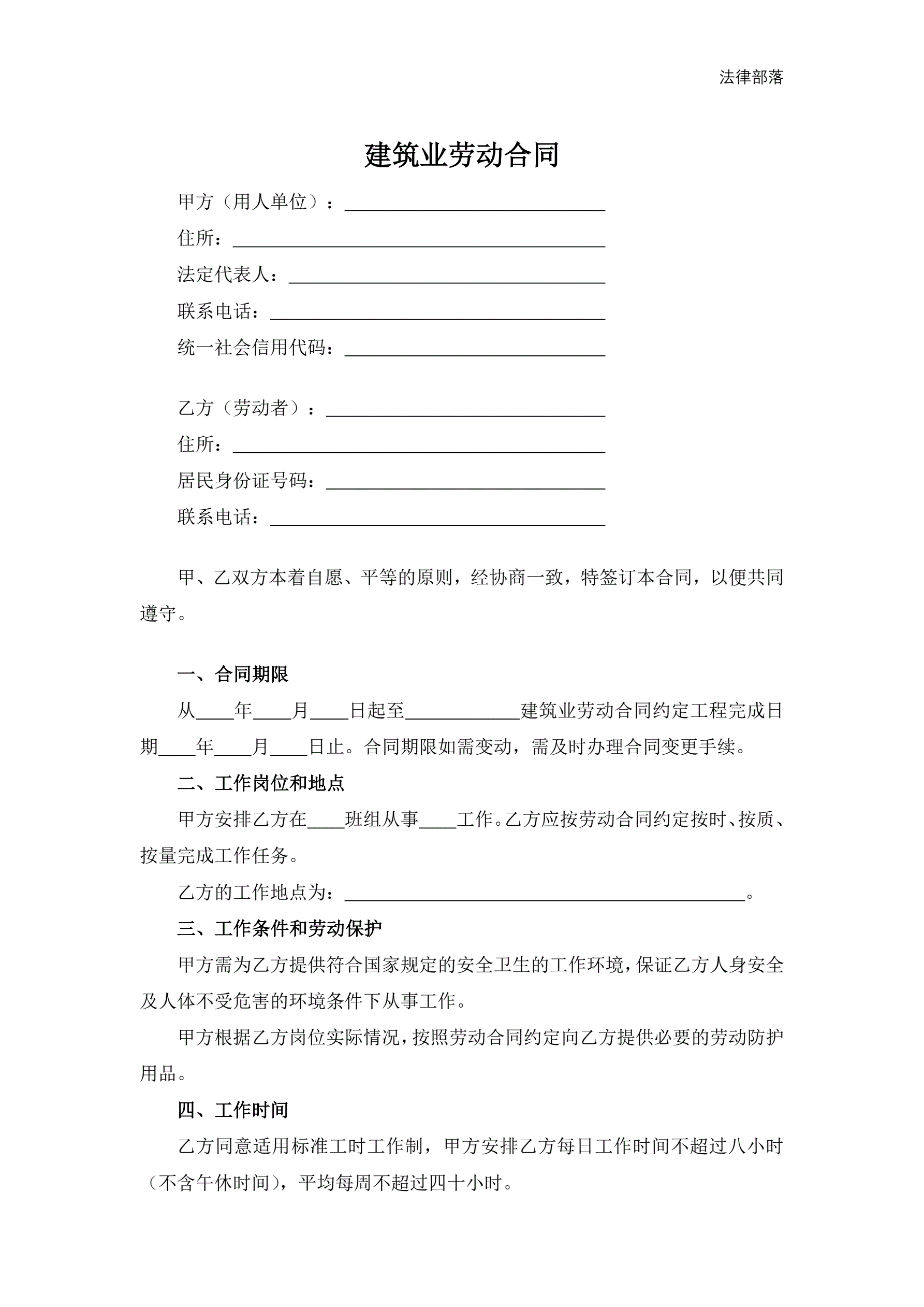 建筑业劳动合同