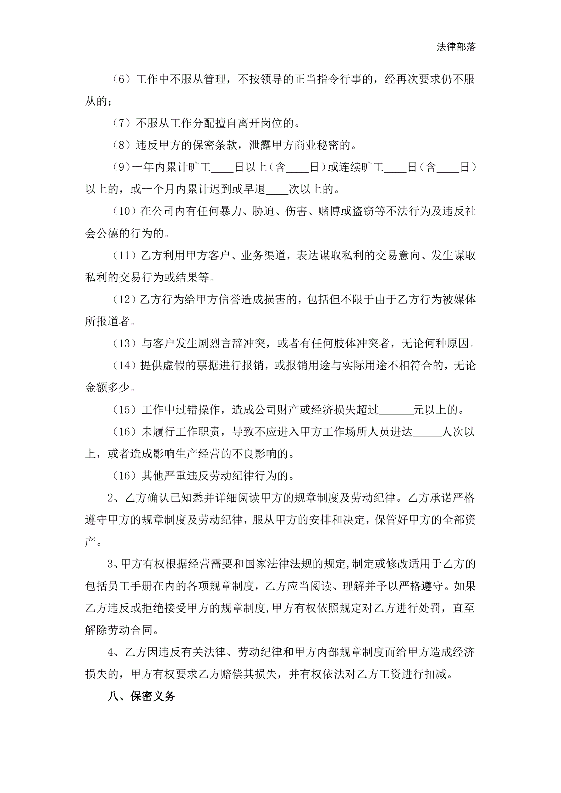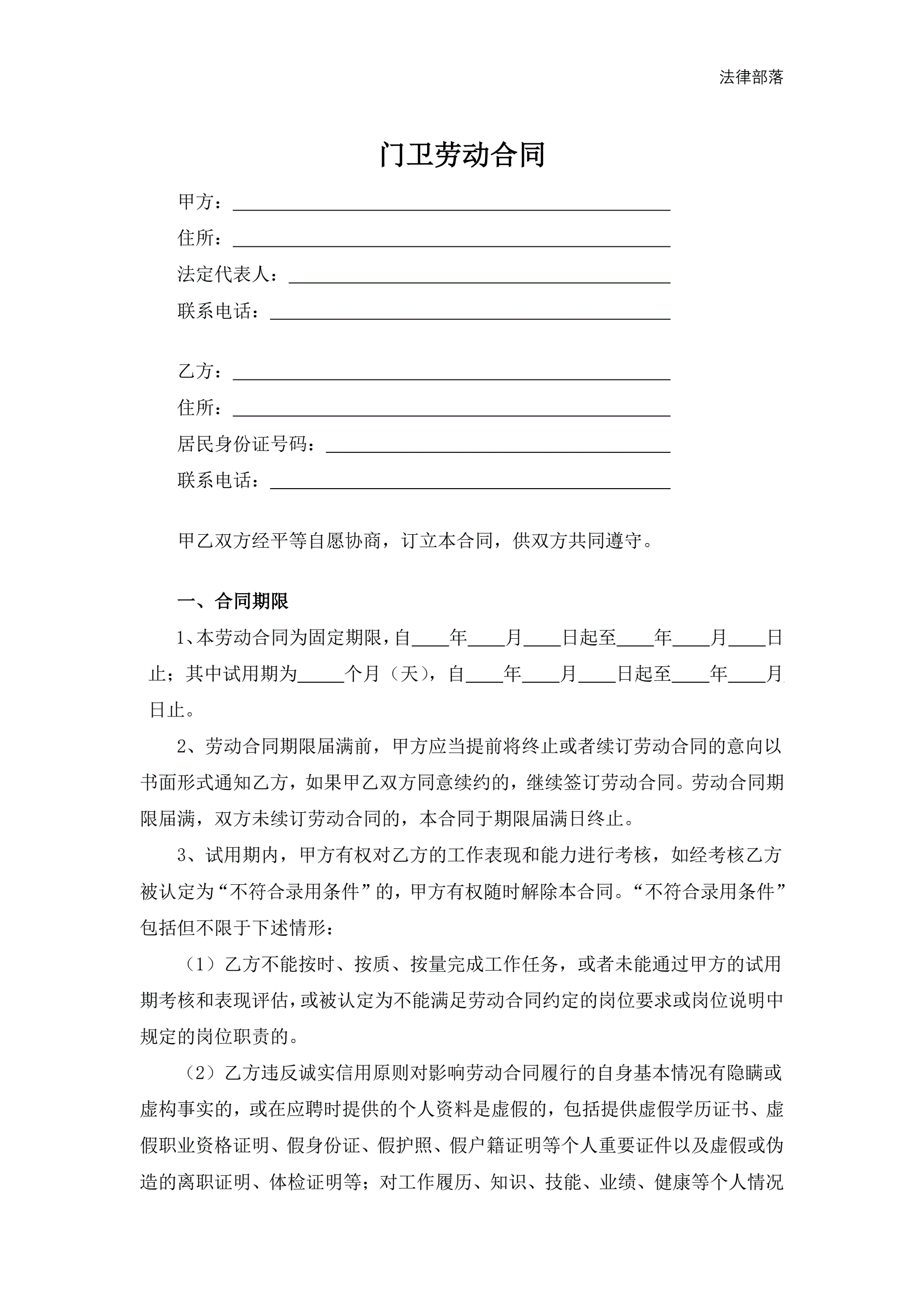>门卫劳动合同