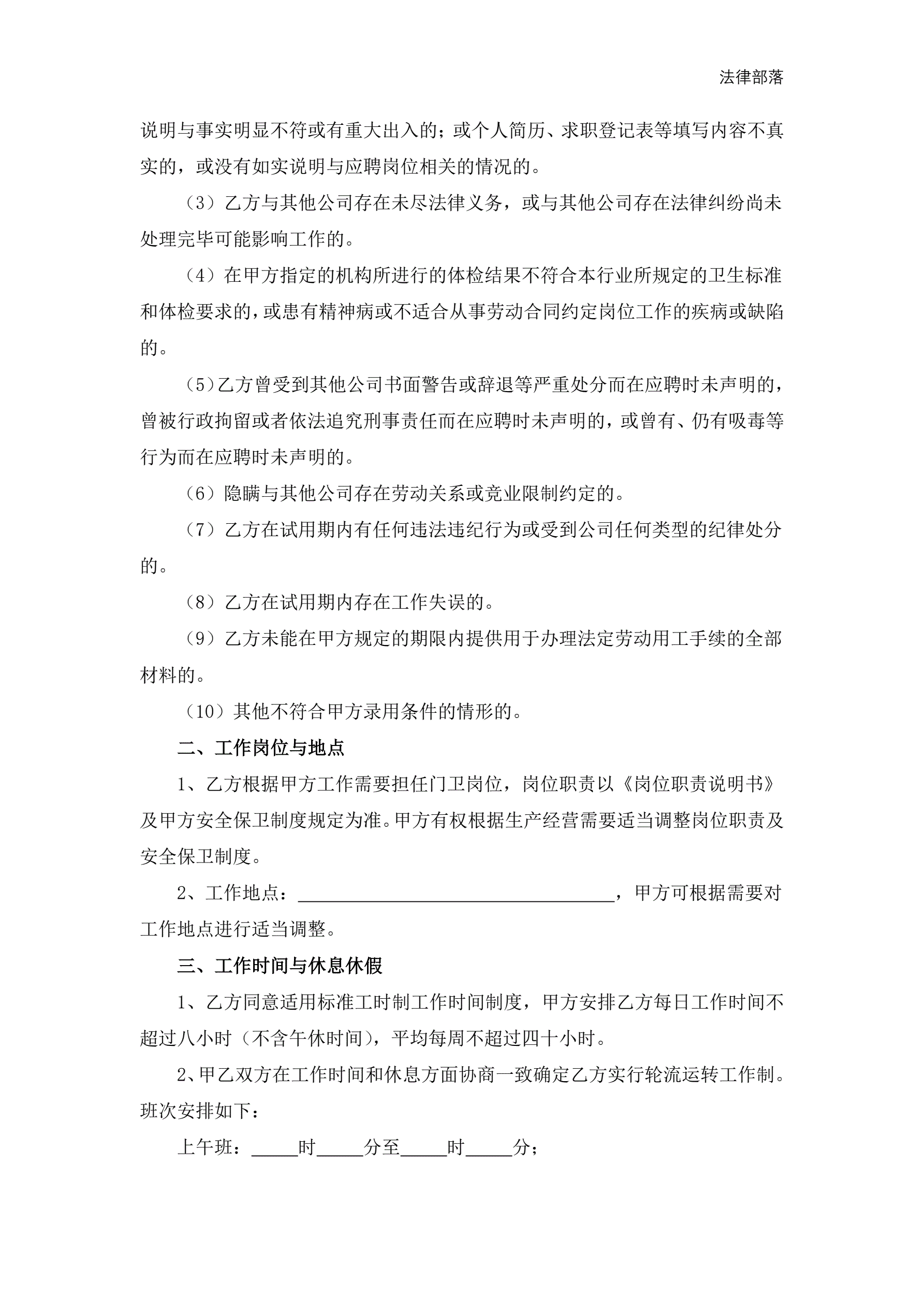 门卫劳动合同