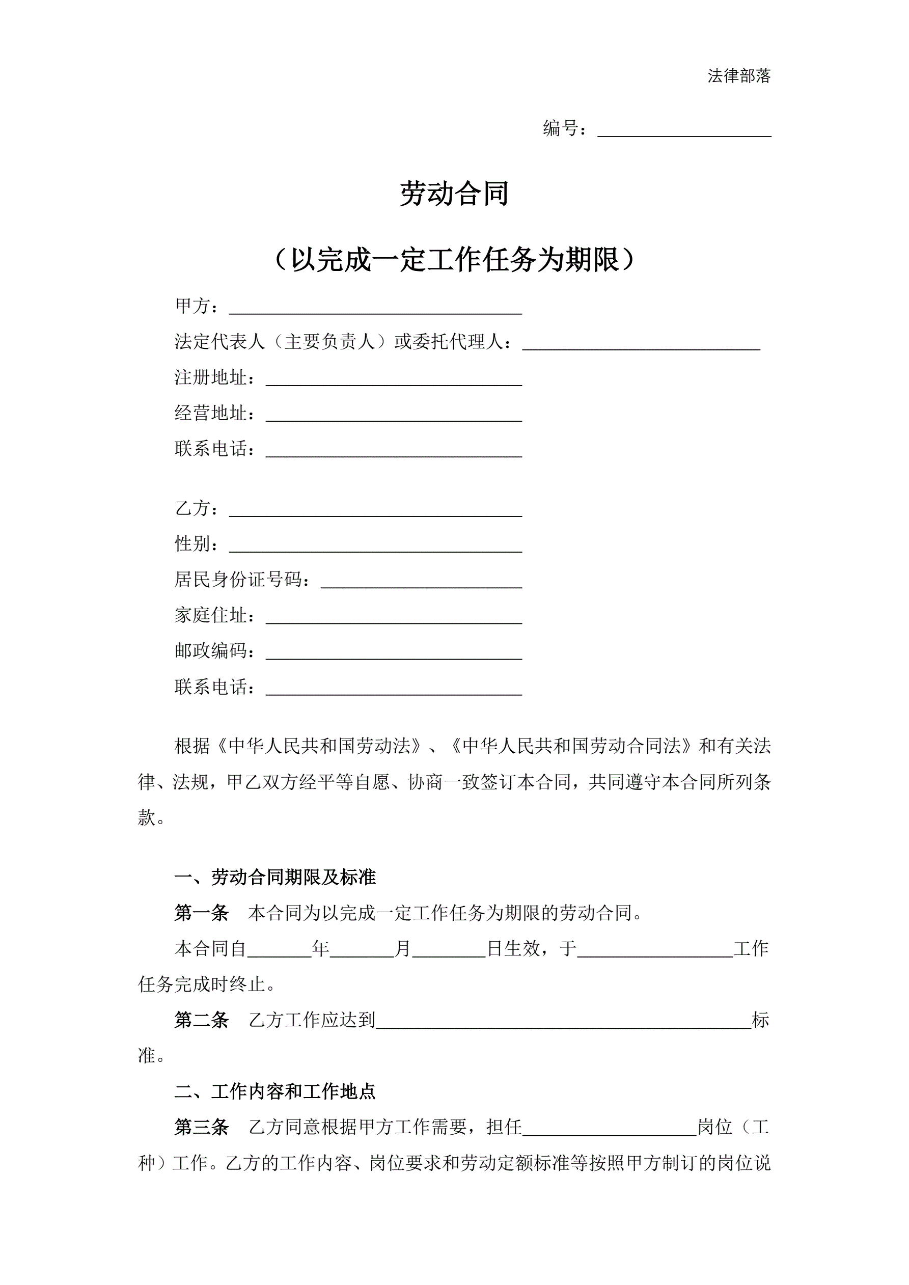 >劳动合同(以完成一定工作任务为期限)
