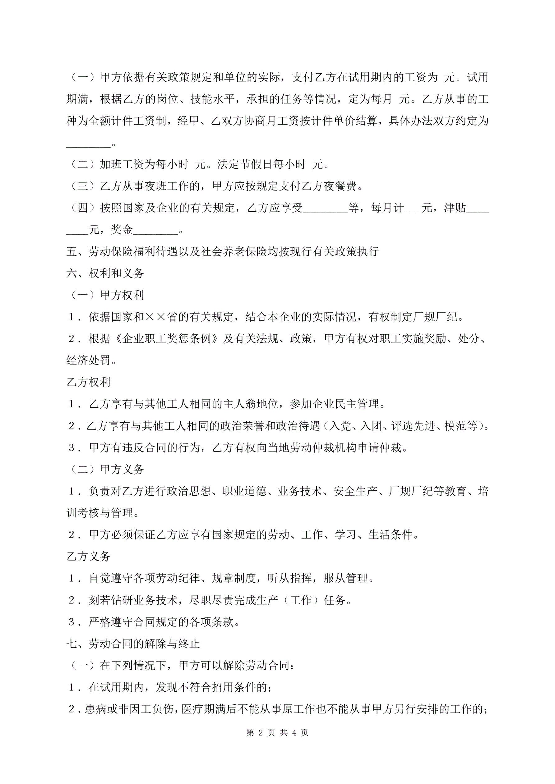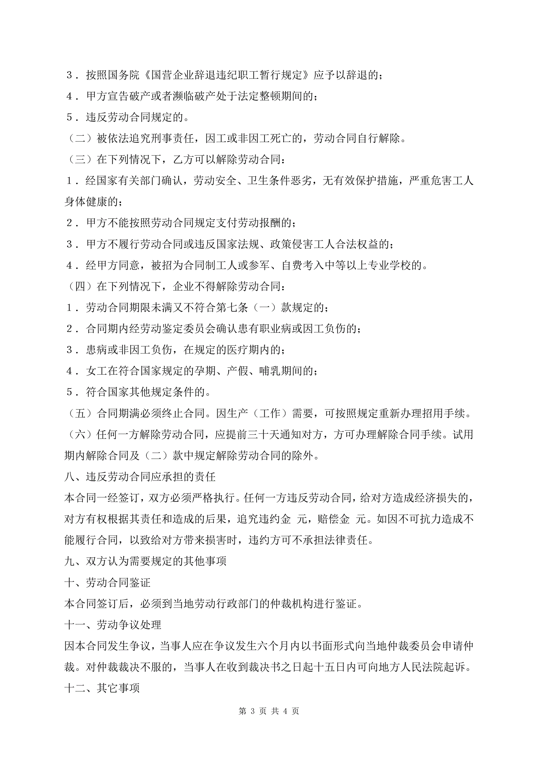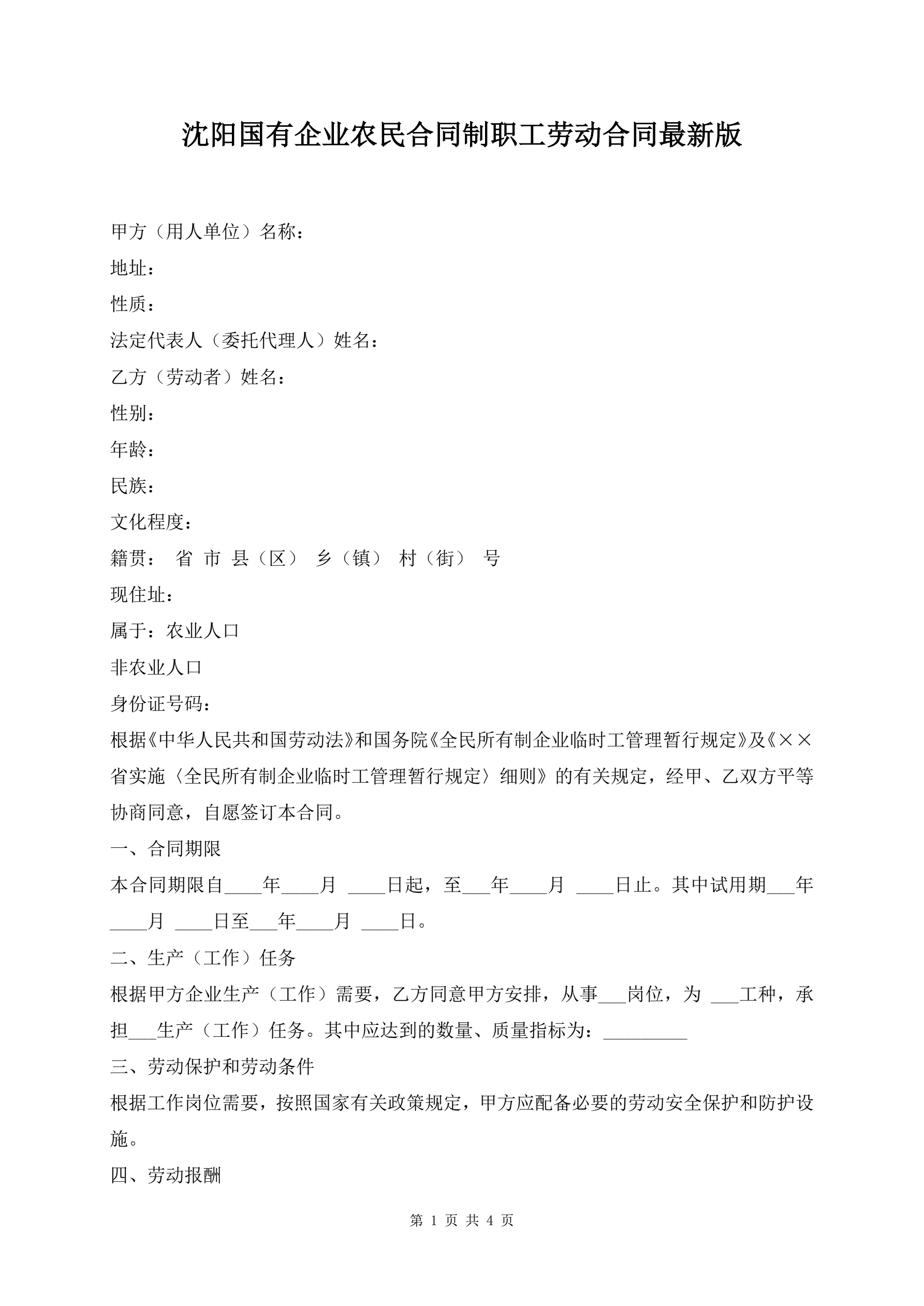 >沈阳国有企业农民合同制职工劳动合同最新版