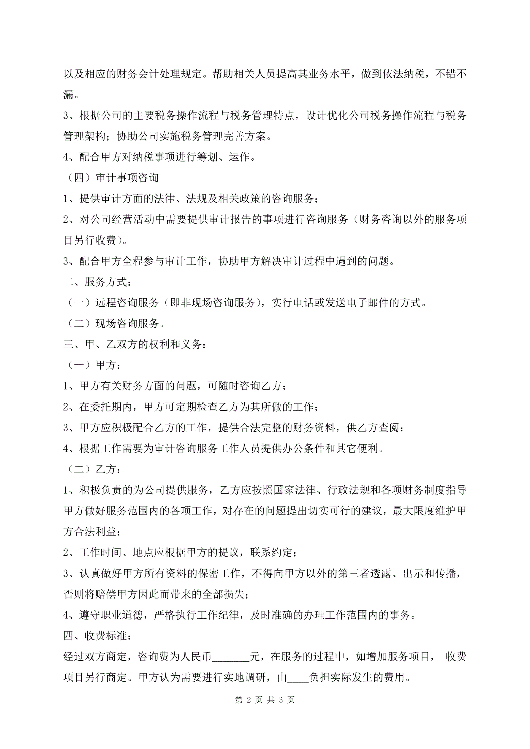 >简单的财务咨询服务协议书范文