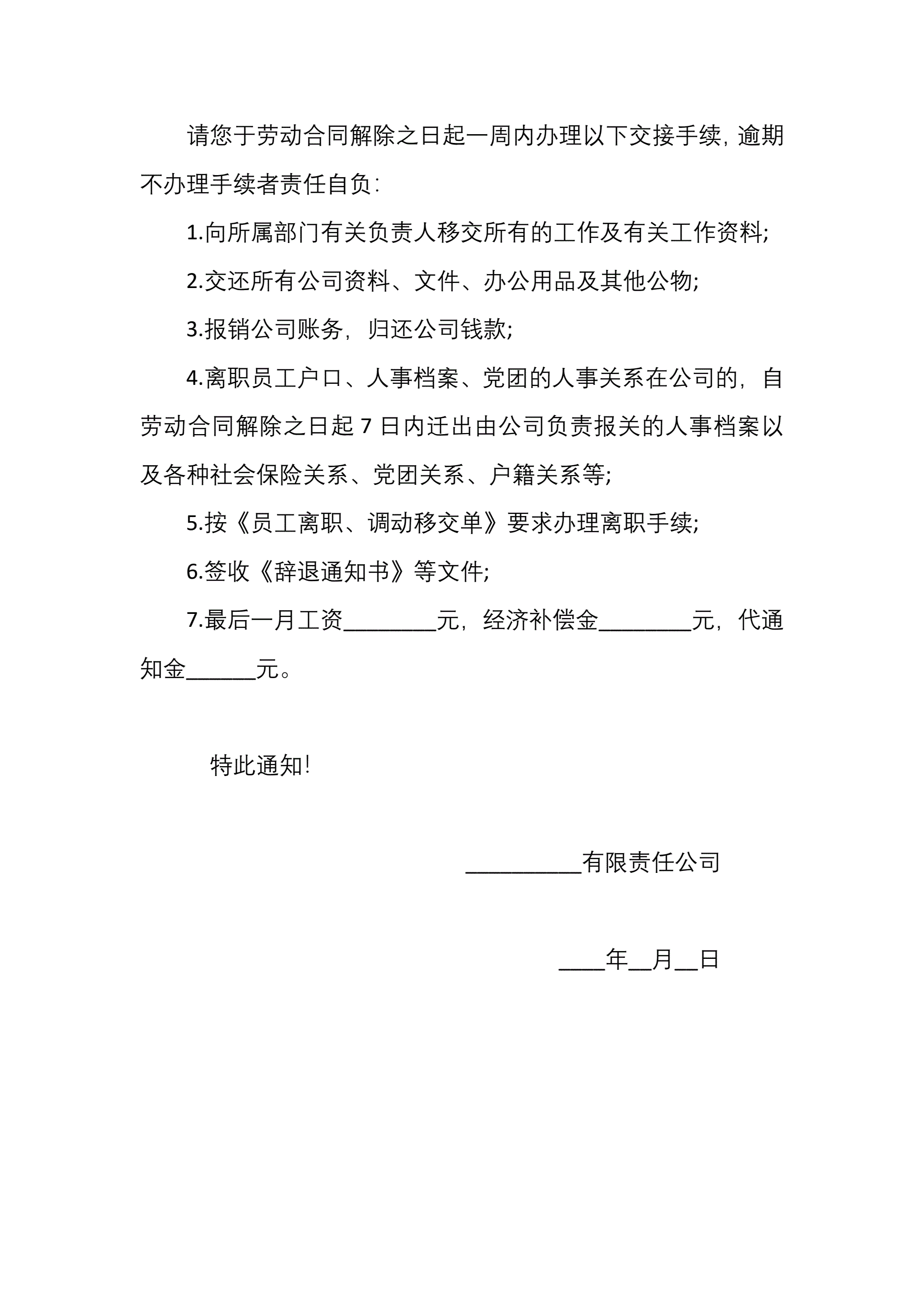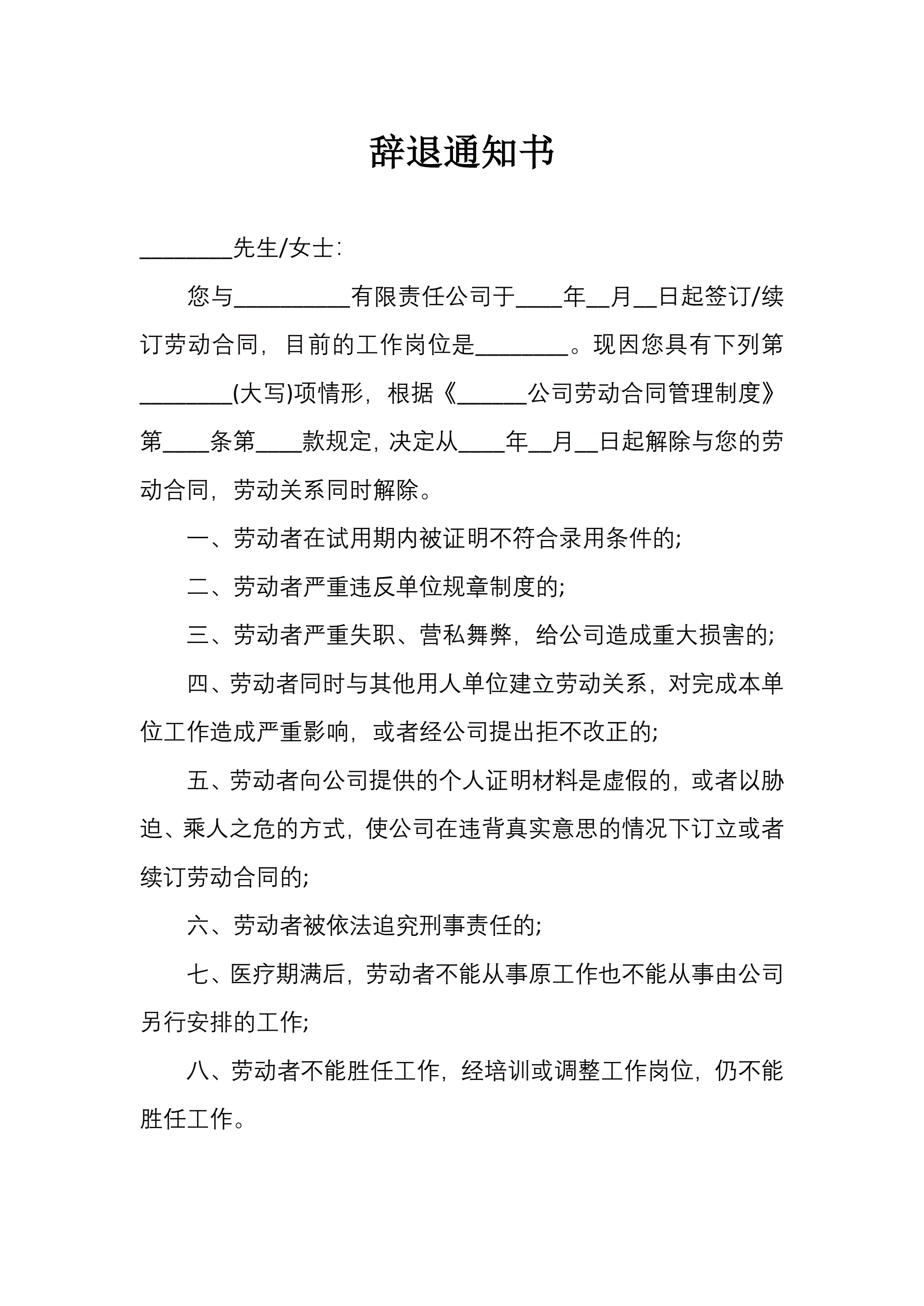 辞退通知书(指导版)