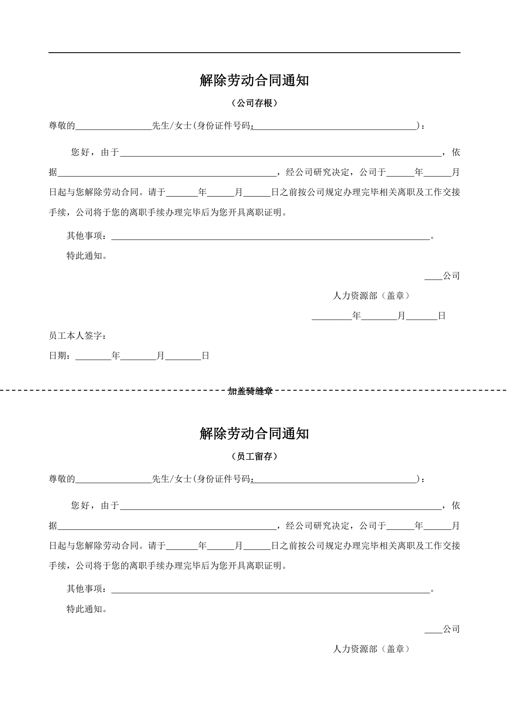 解除劳动合同通知(指导版)