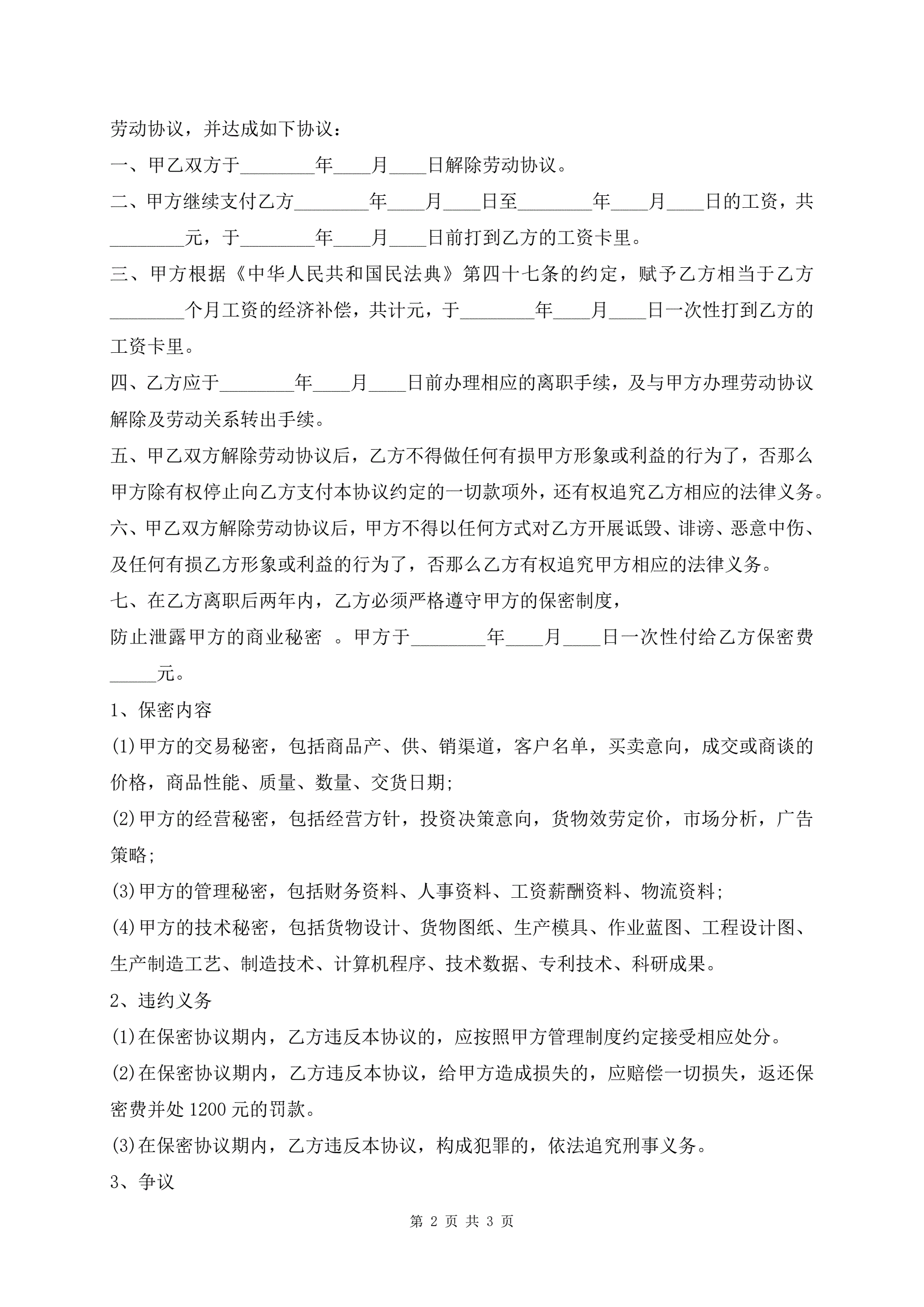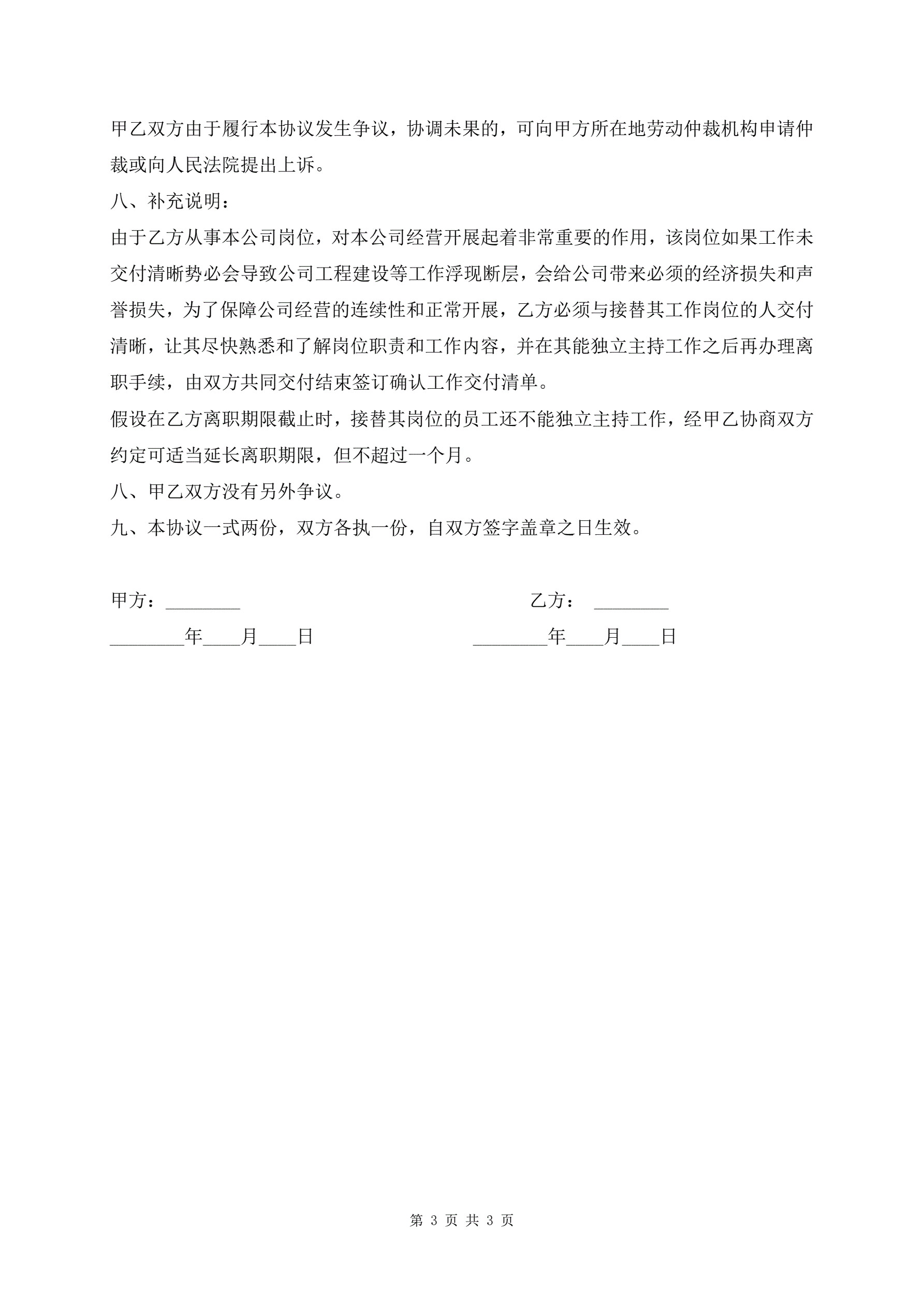 离职协议