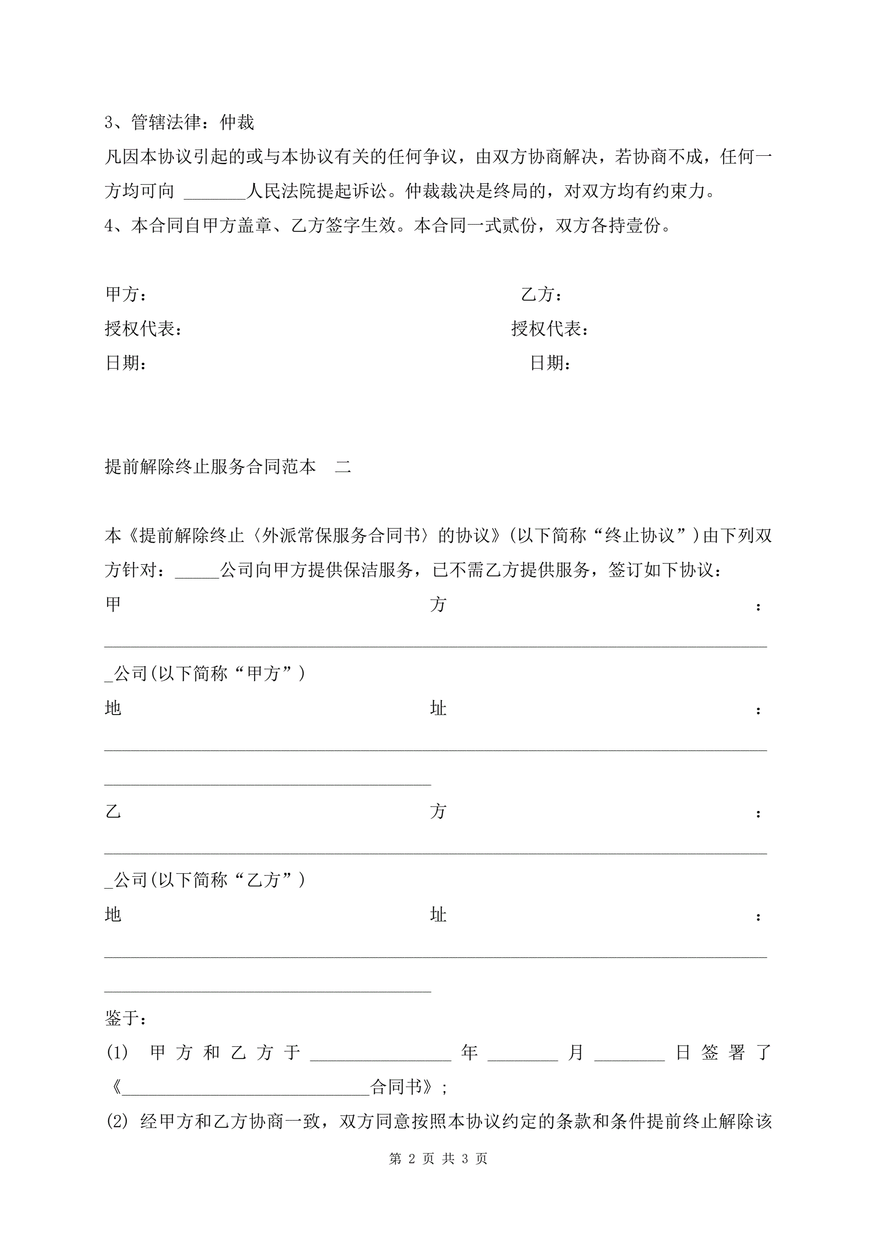 提前解除终止服务合同范本