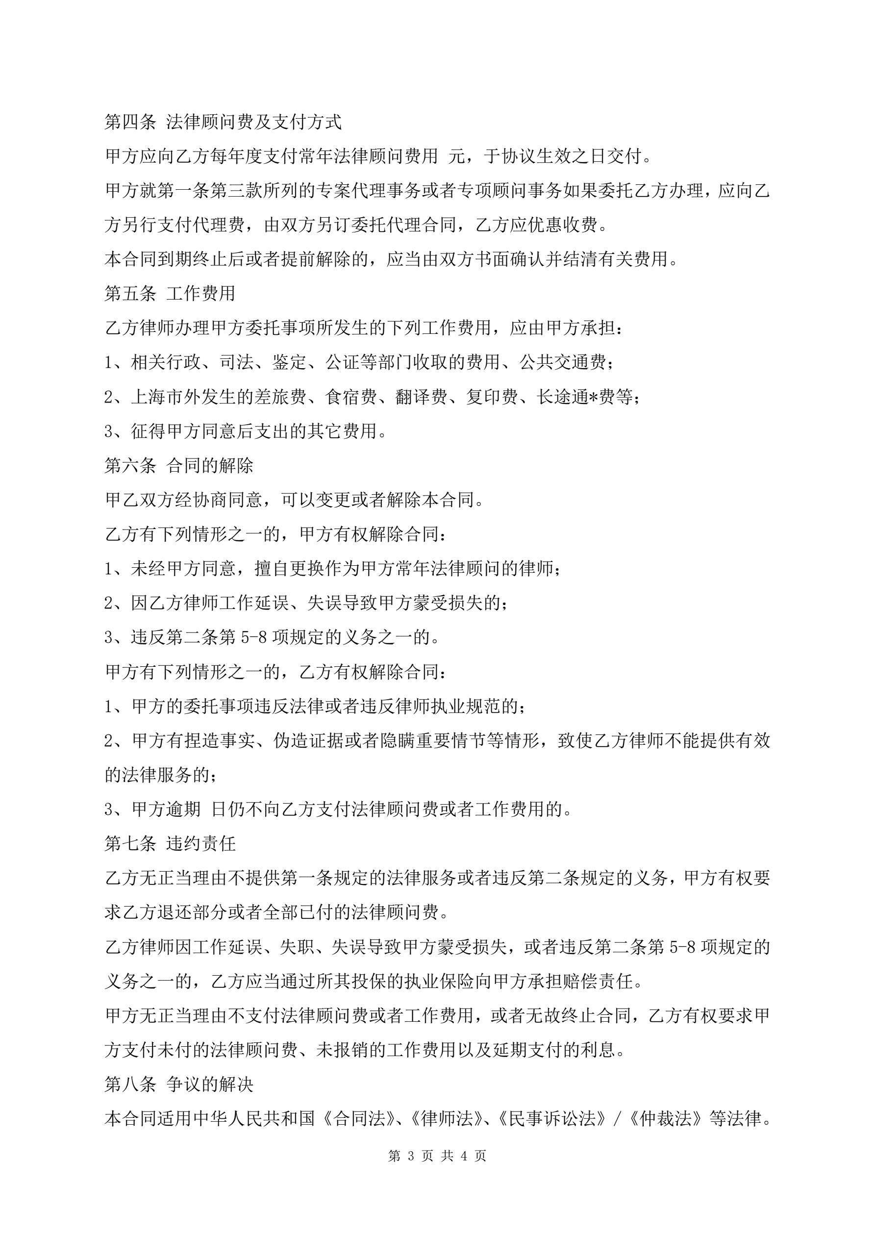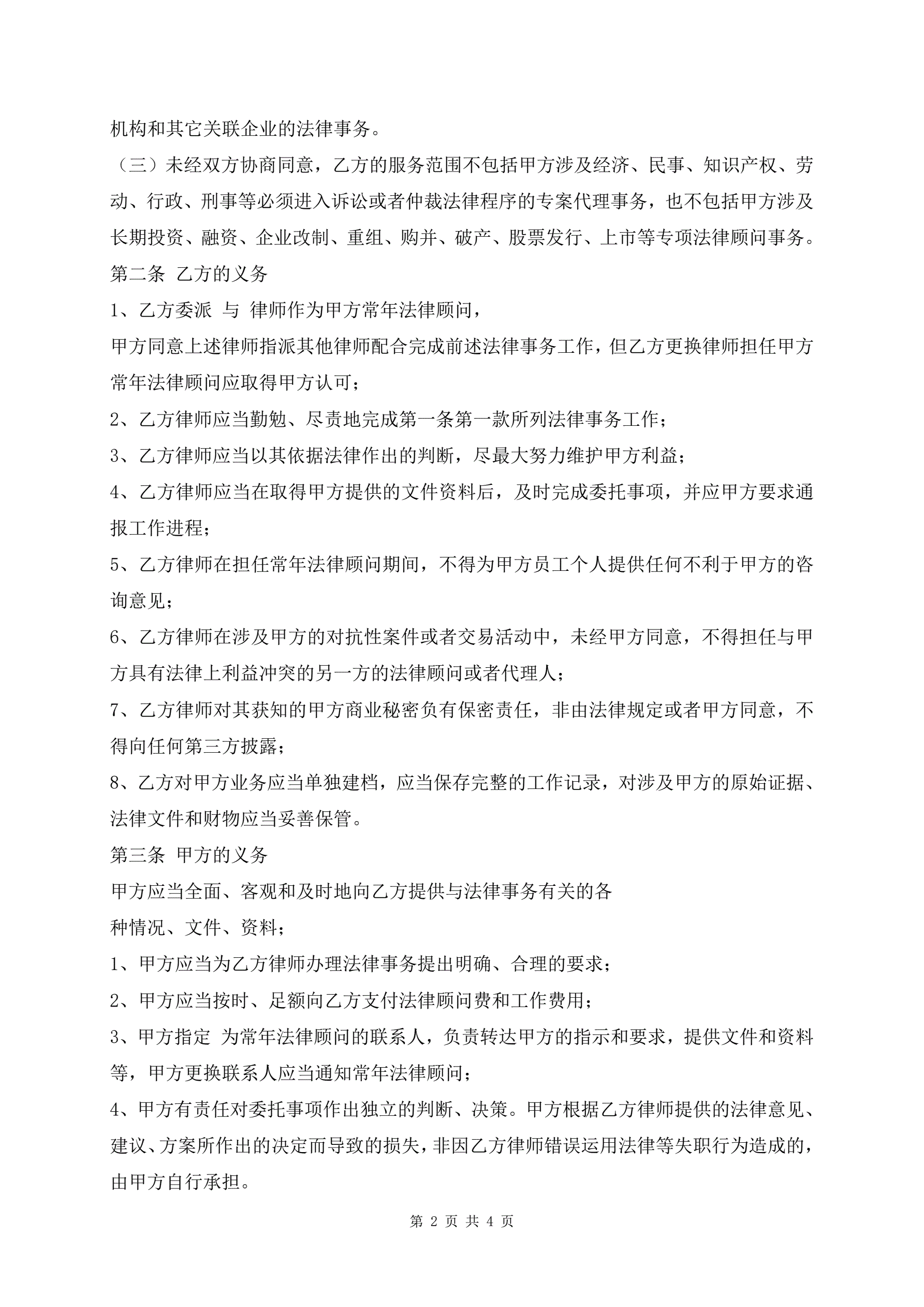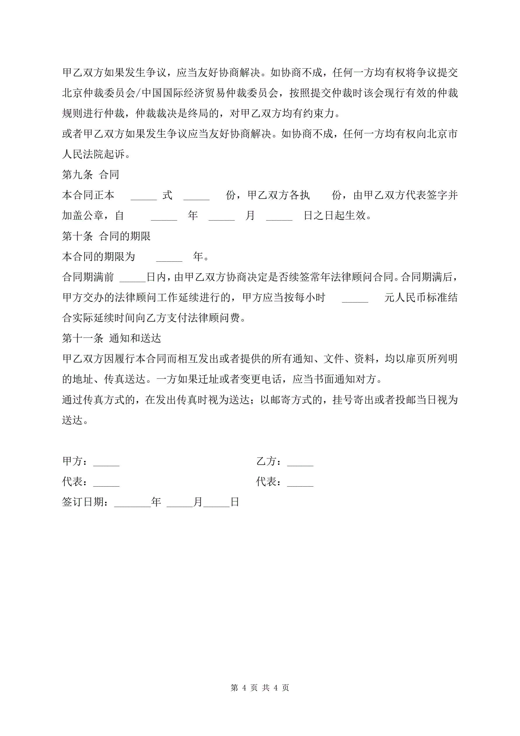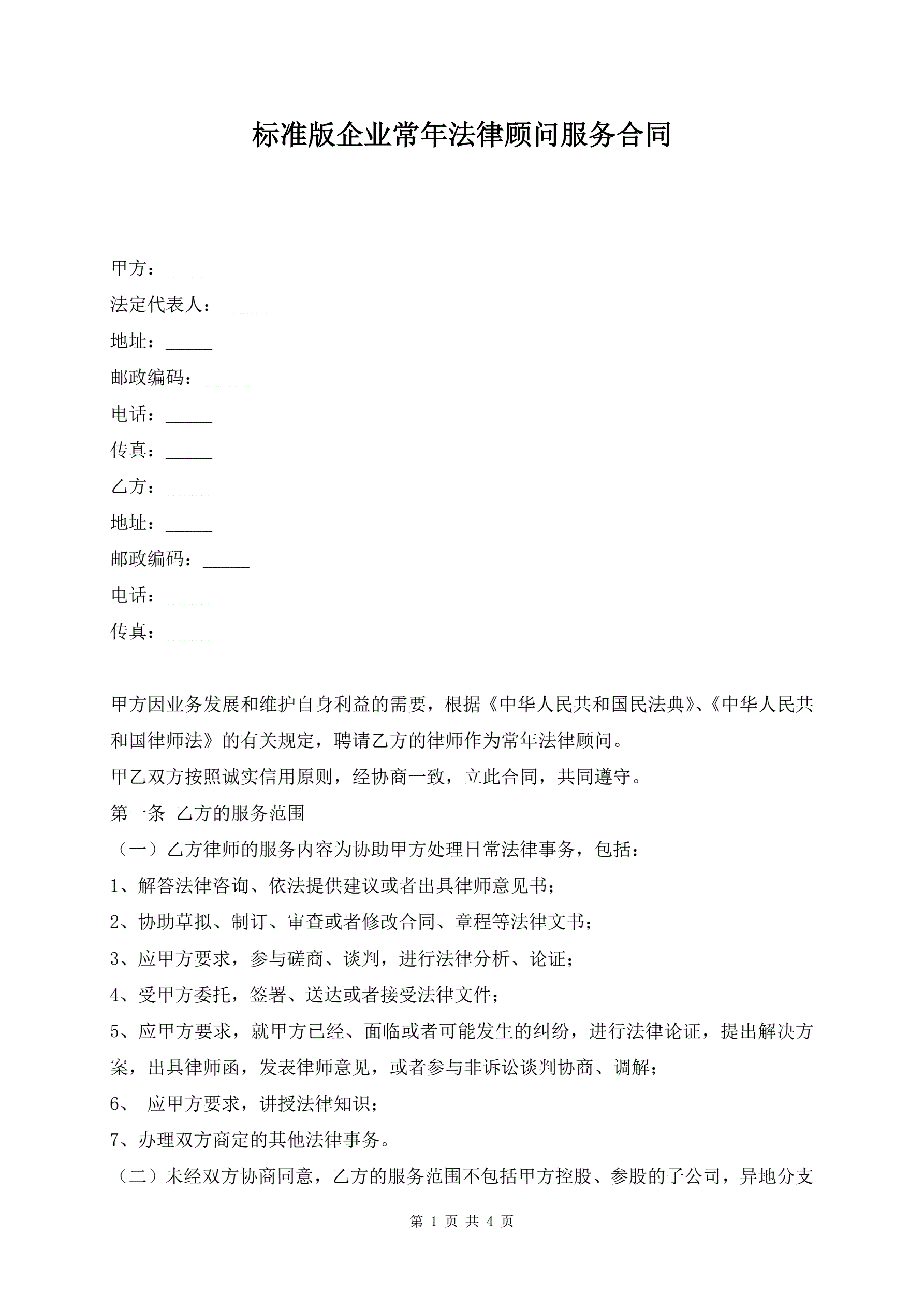 >标准版企业常年法律顾问服务合同
