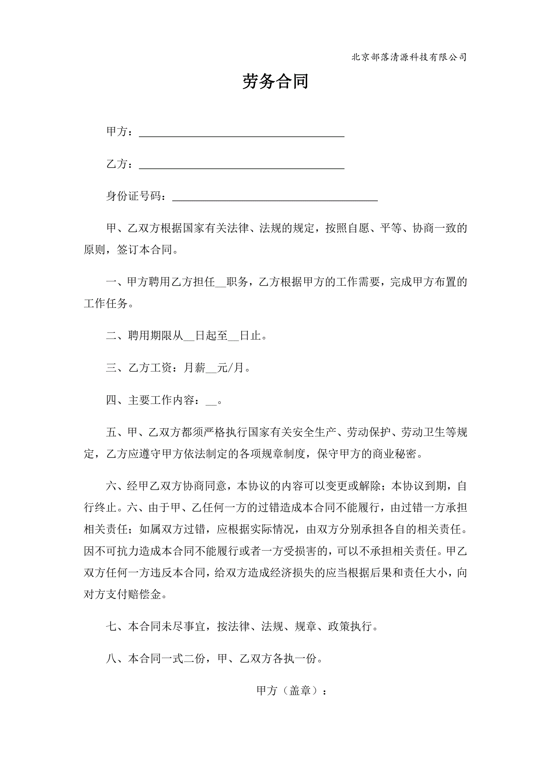劳务合同精简版