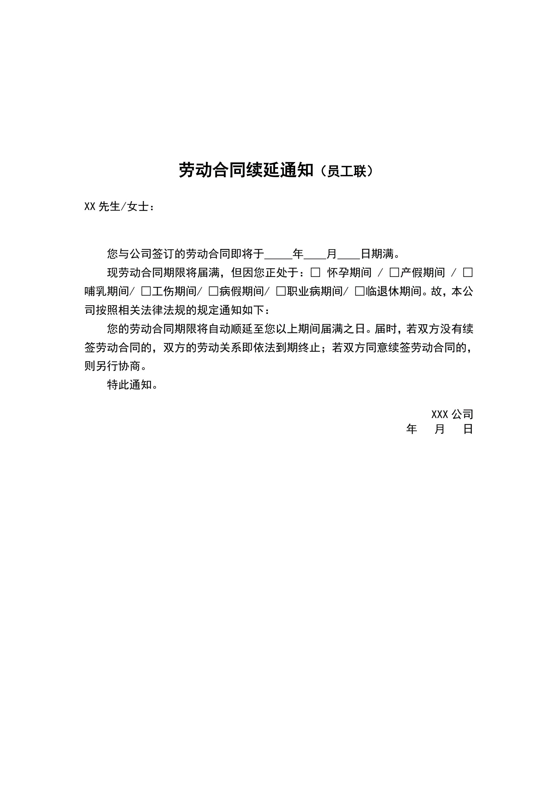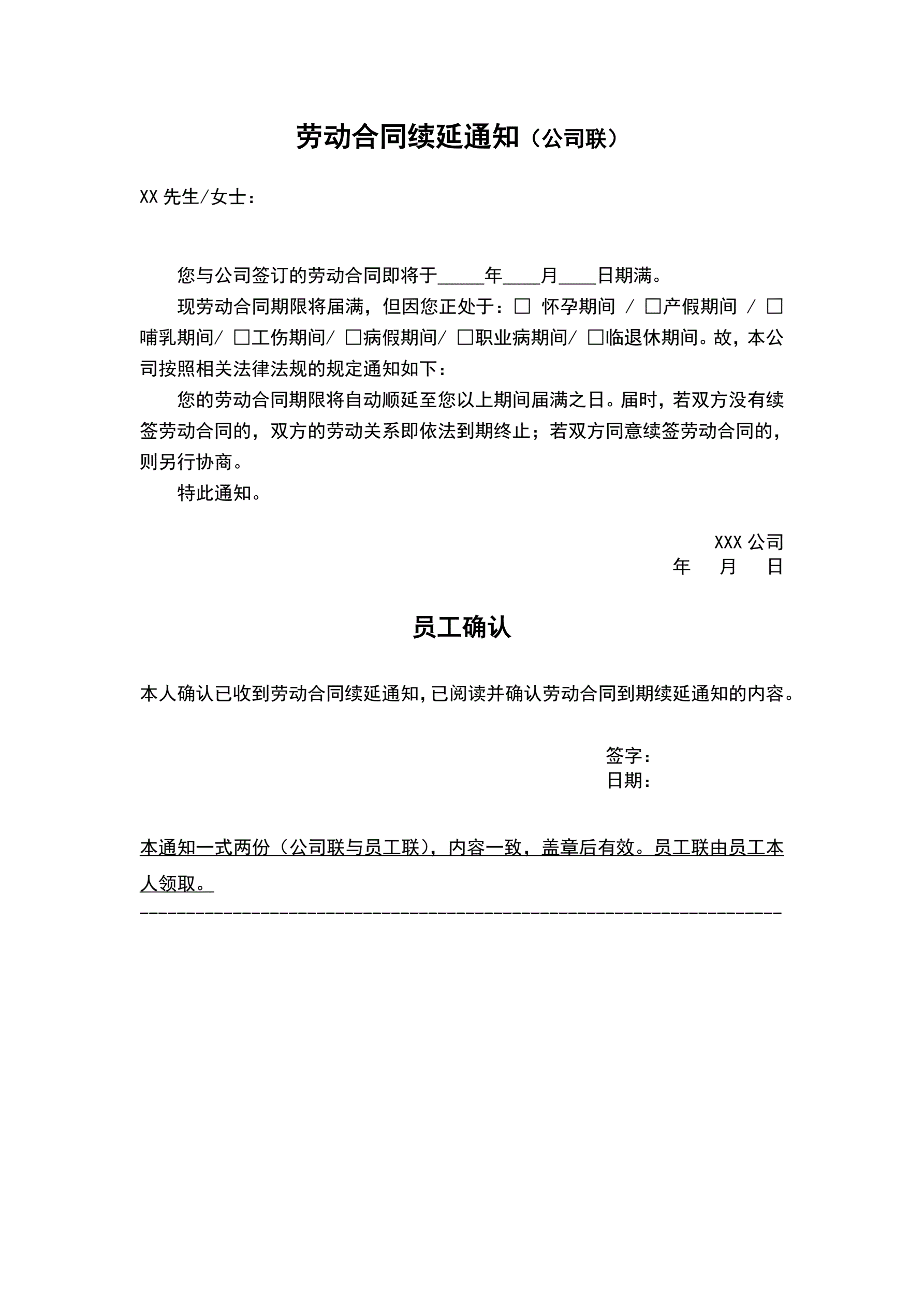 劳动合同续延通知书(指导版)