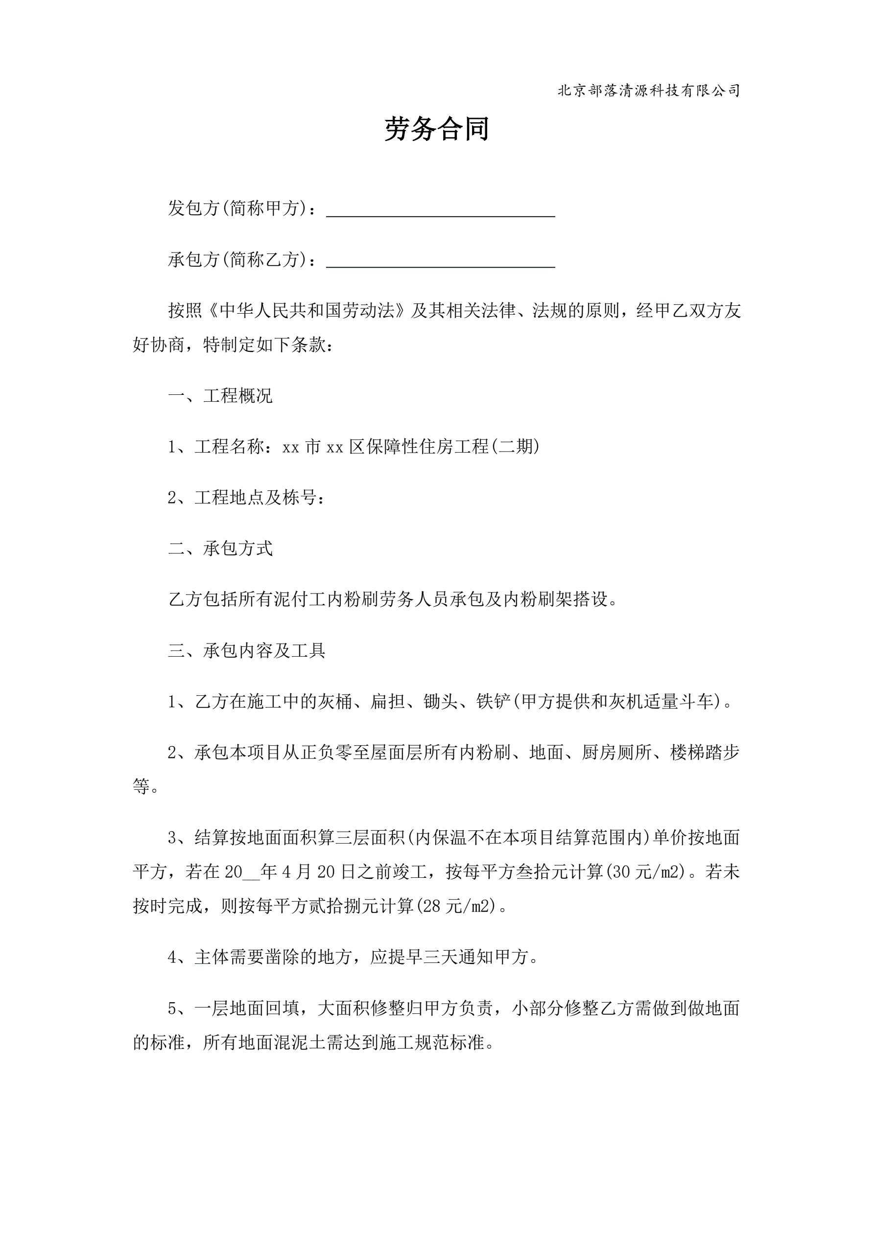 >住房工程劳务合同