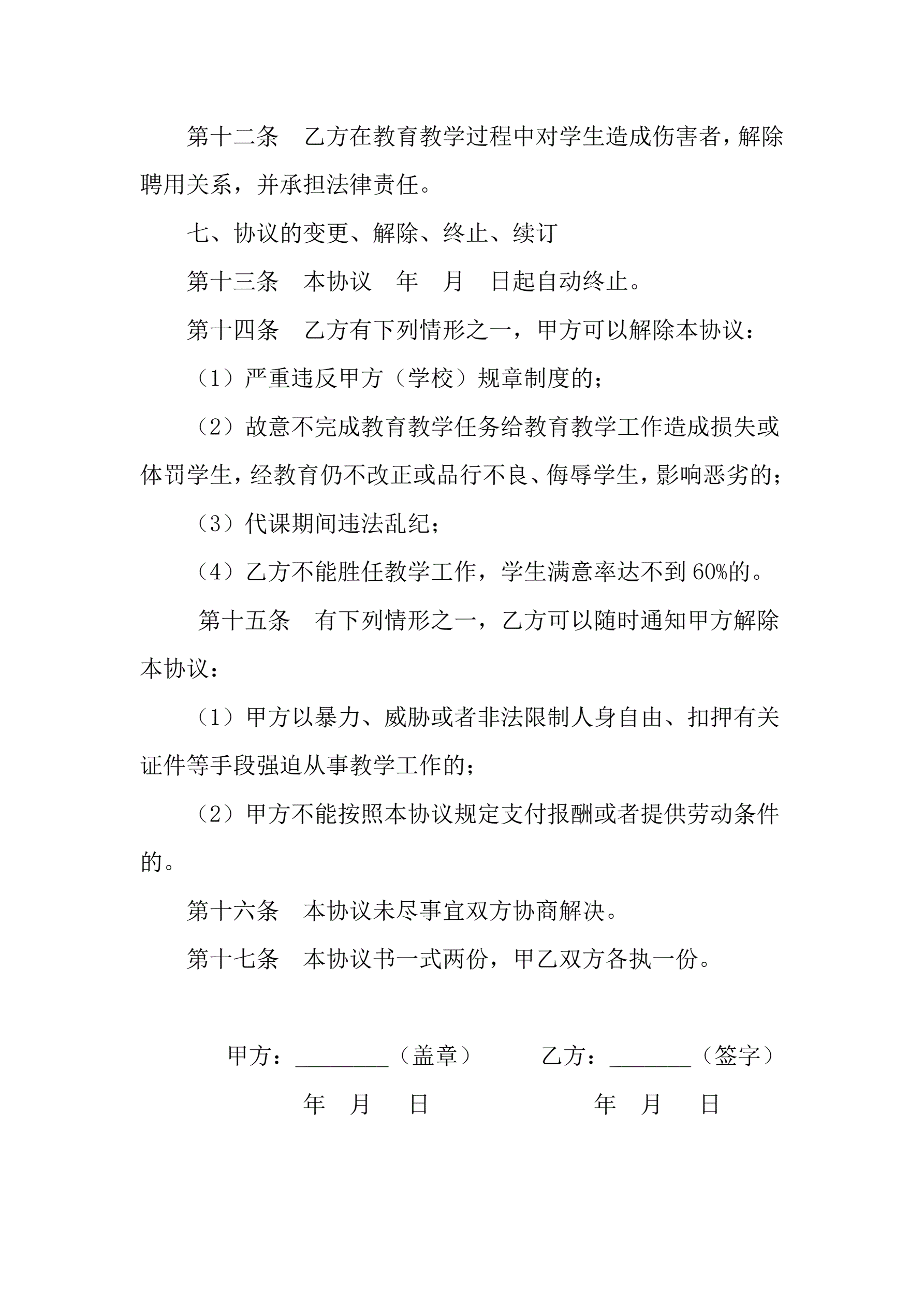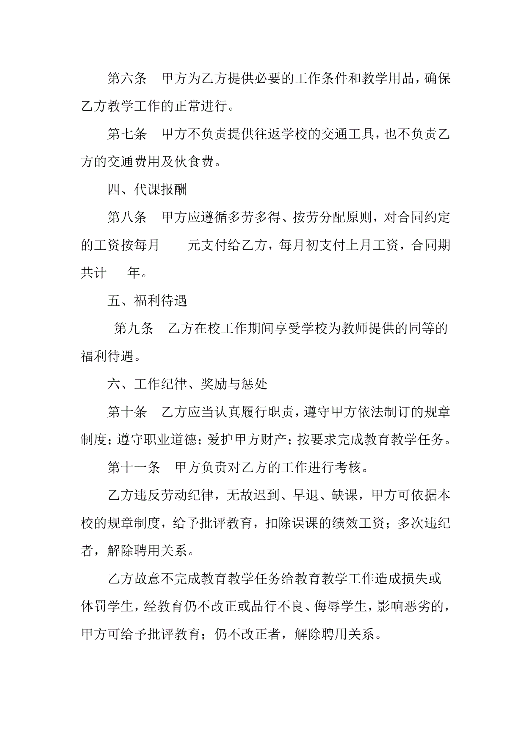 >代课老师协议书