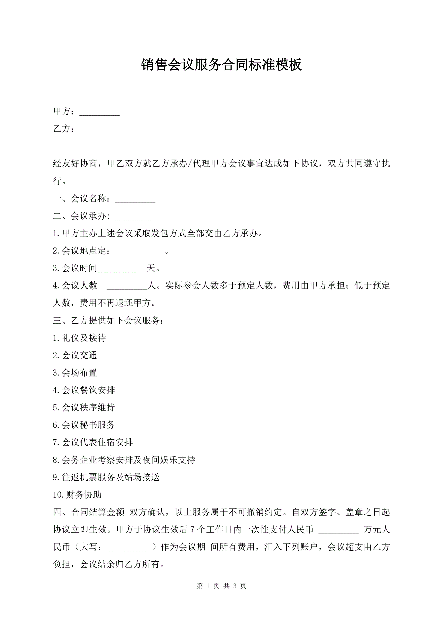 销售会议服务合同标准模板