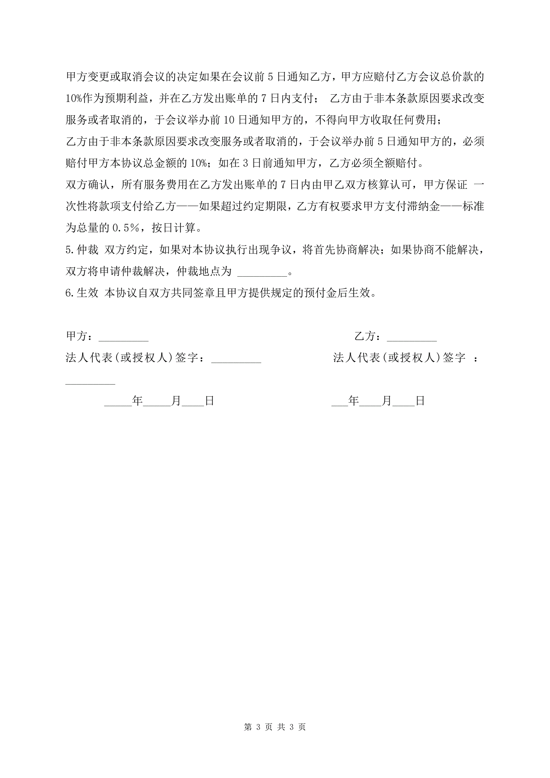 >销售会议服务合同标准模板