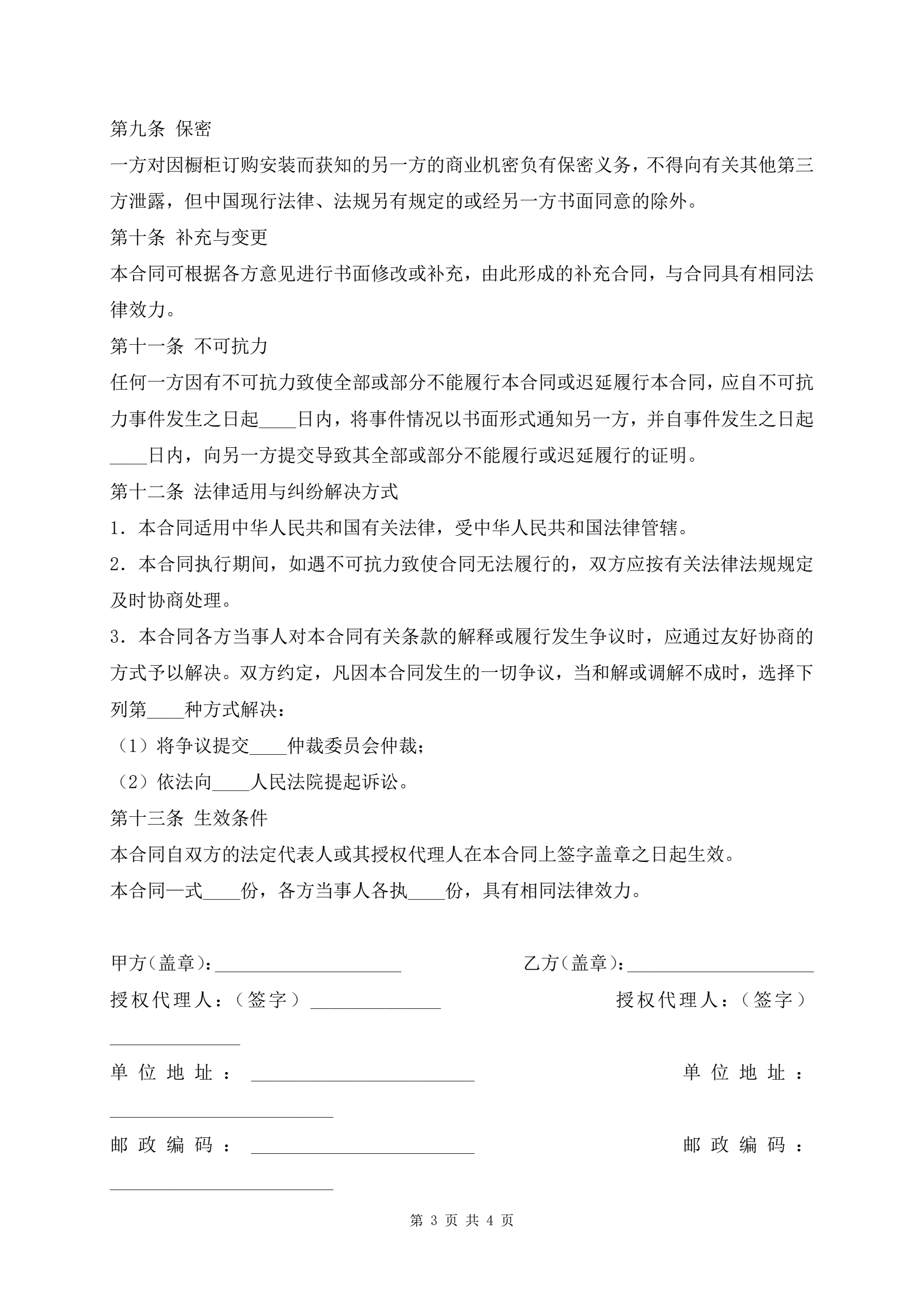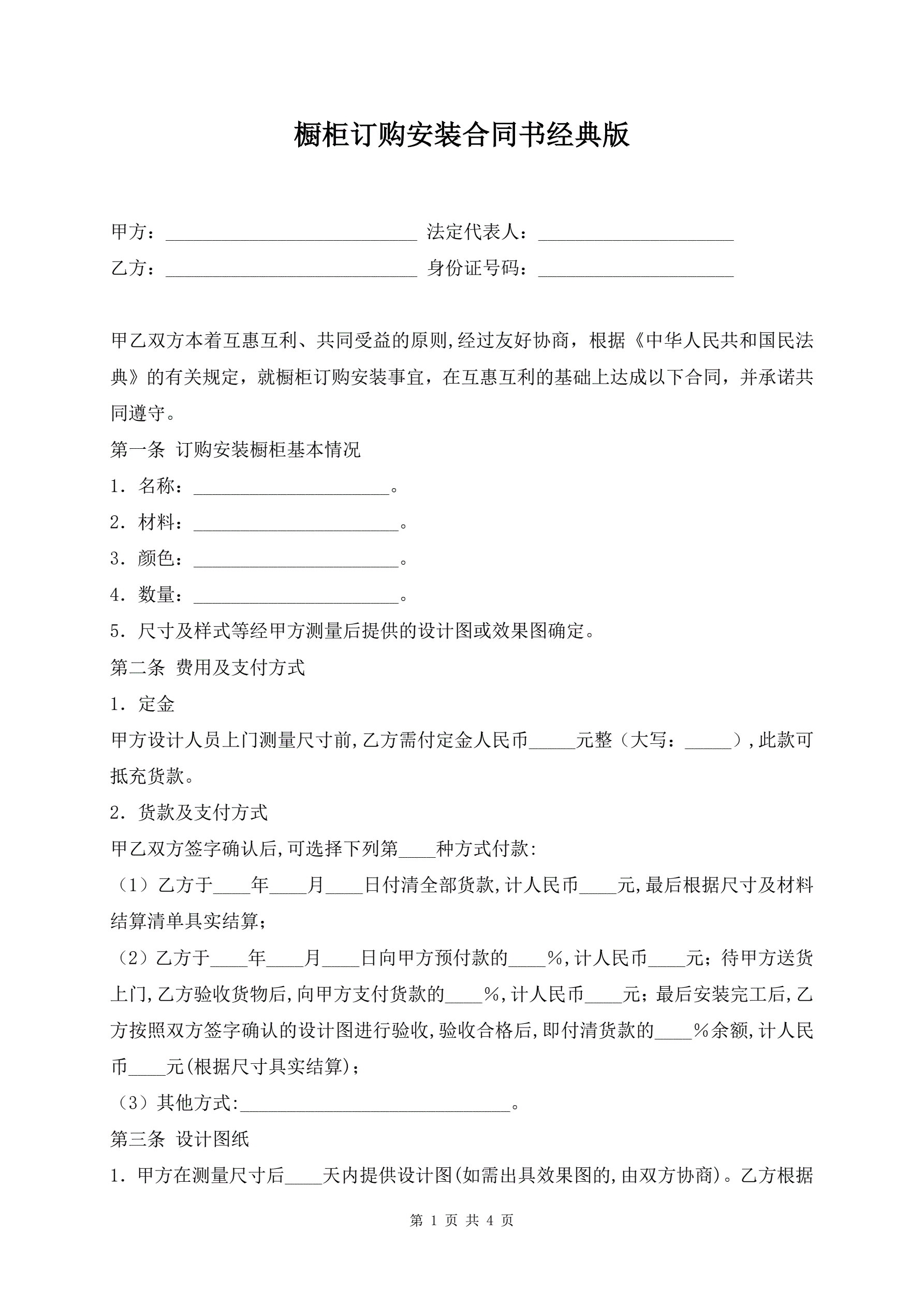 橱柜订购安装合同书经典版
