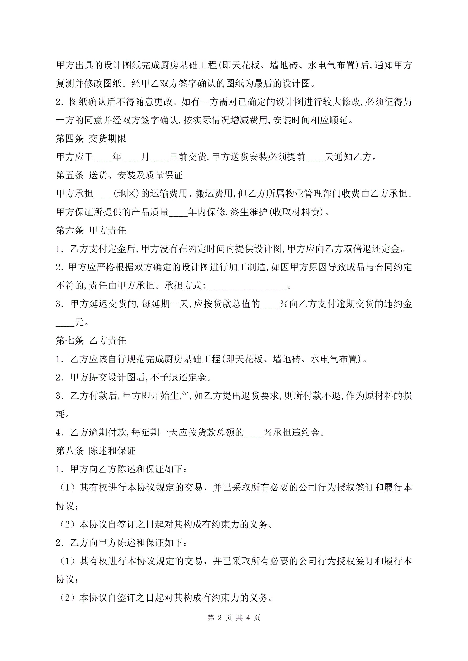 >橱柜订购安装合同书经典版