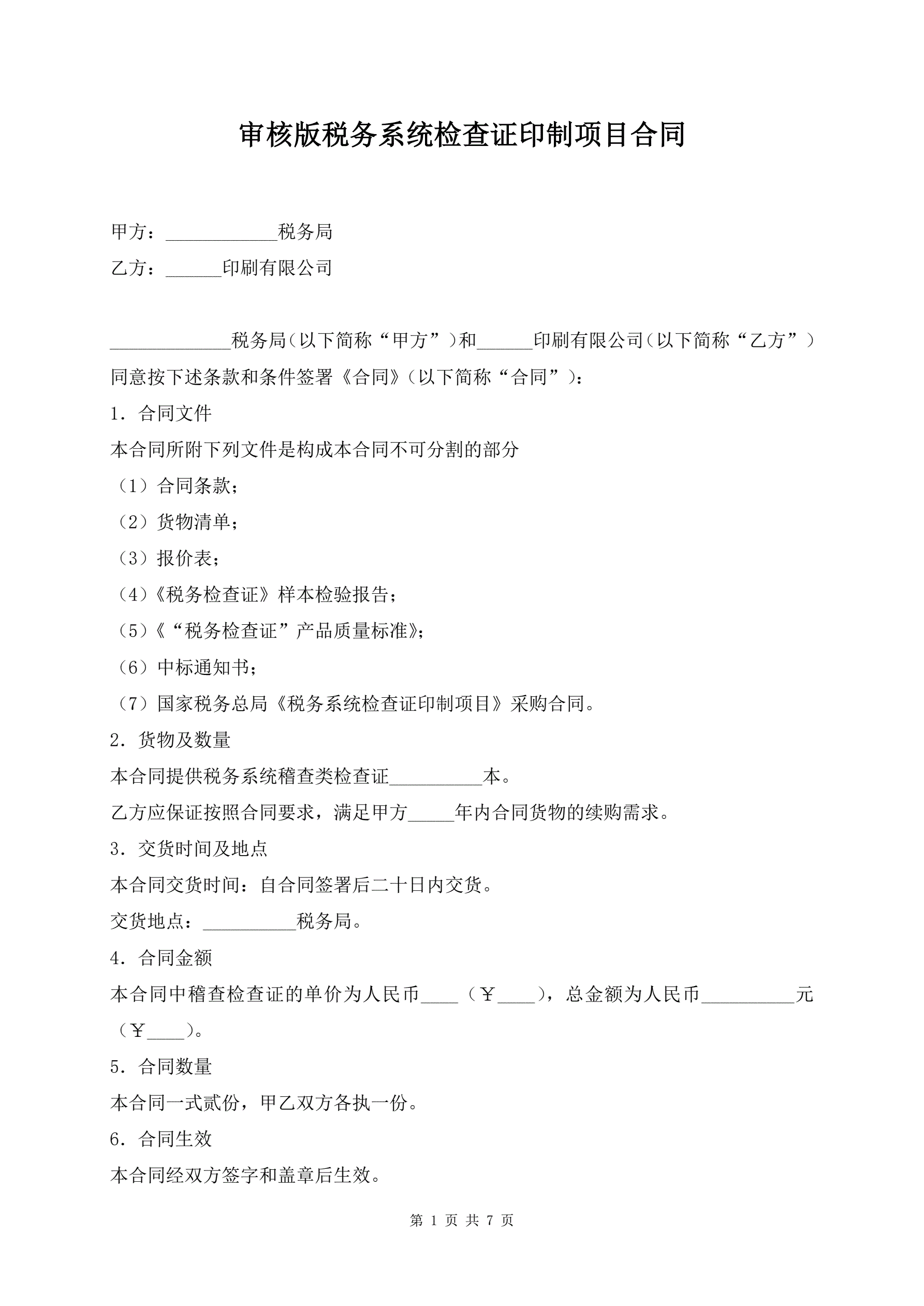 >审核版税务系统检查证印制项目合同