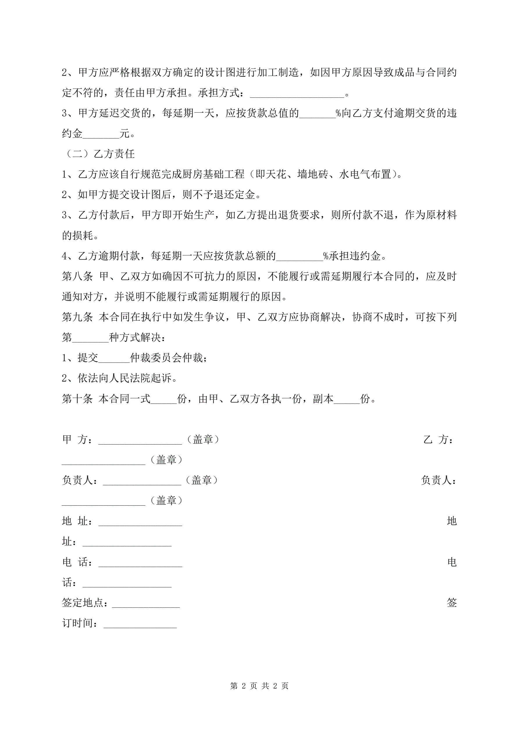 >武汉市橱柜订购安装协议