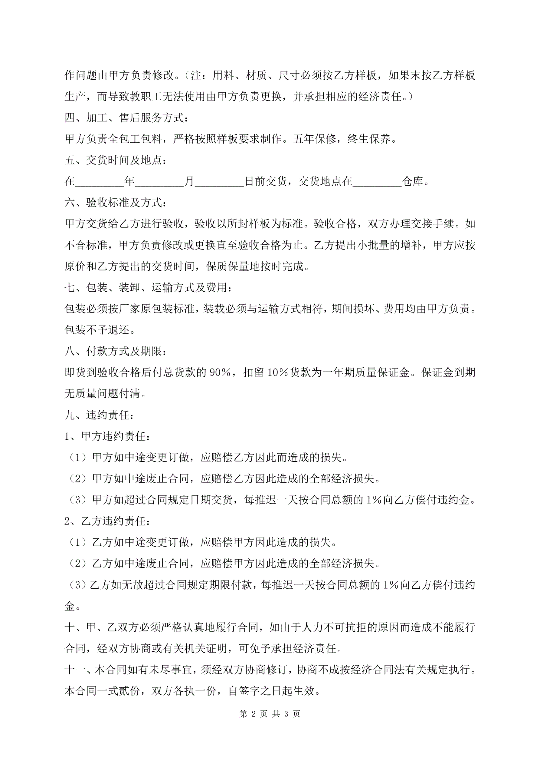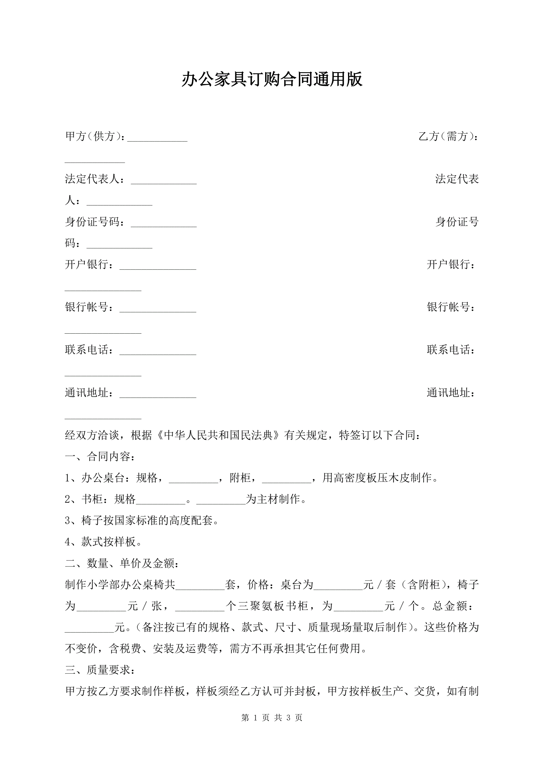 >办公家具订购合同通用版