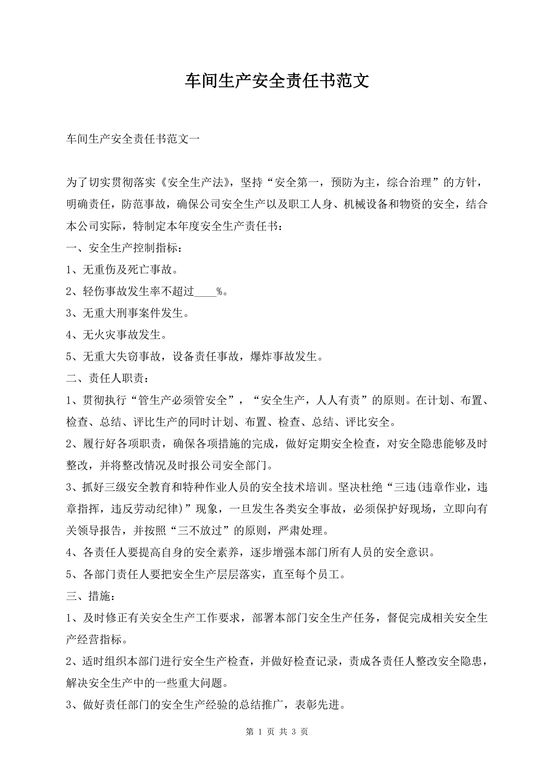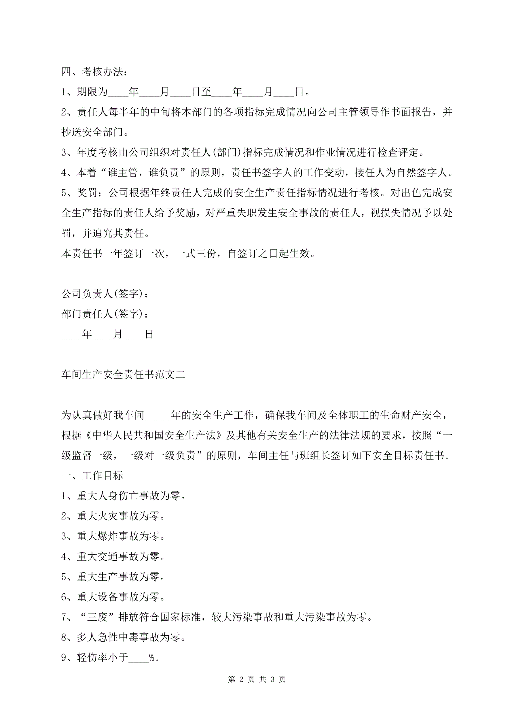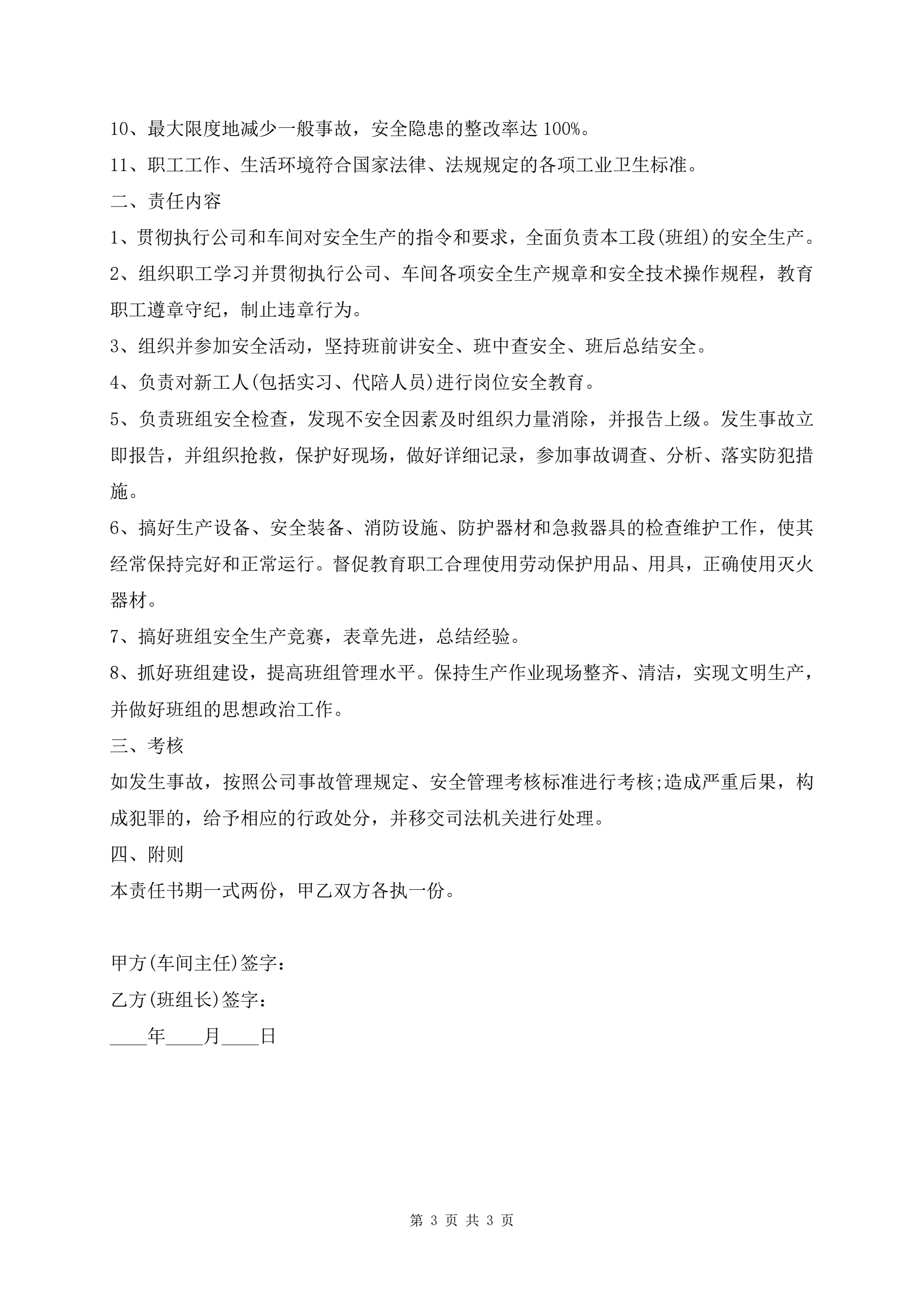 >车间生产安全责任书范文